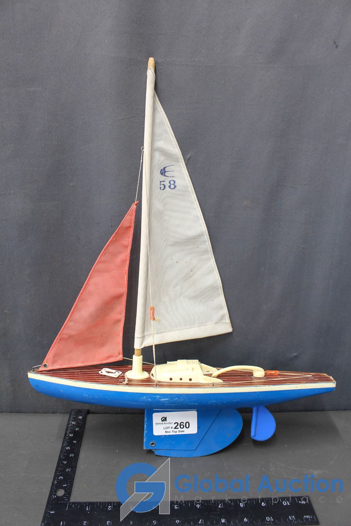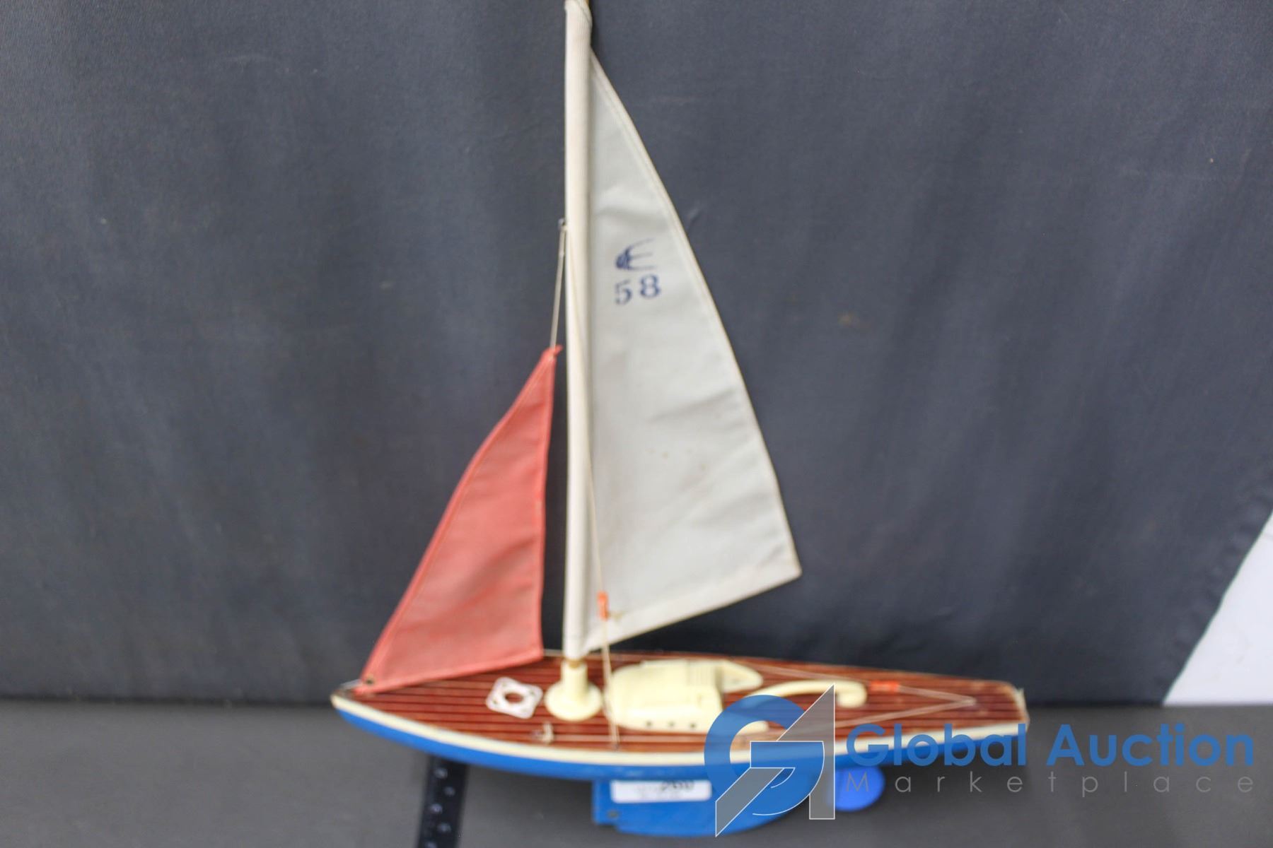 Lot 260 Vintage Wood & Tin Sail Boat