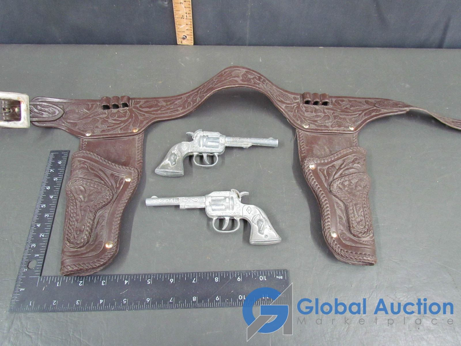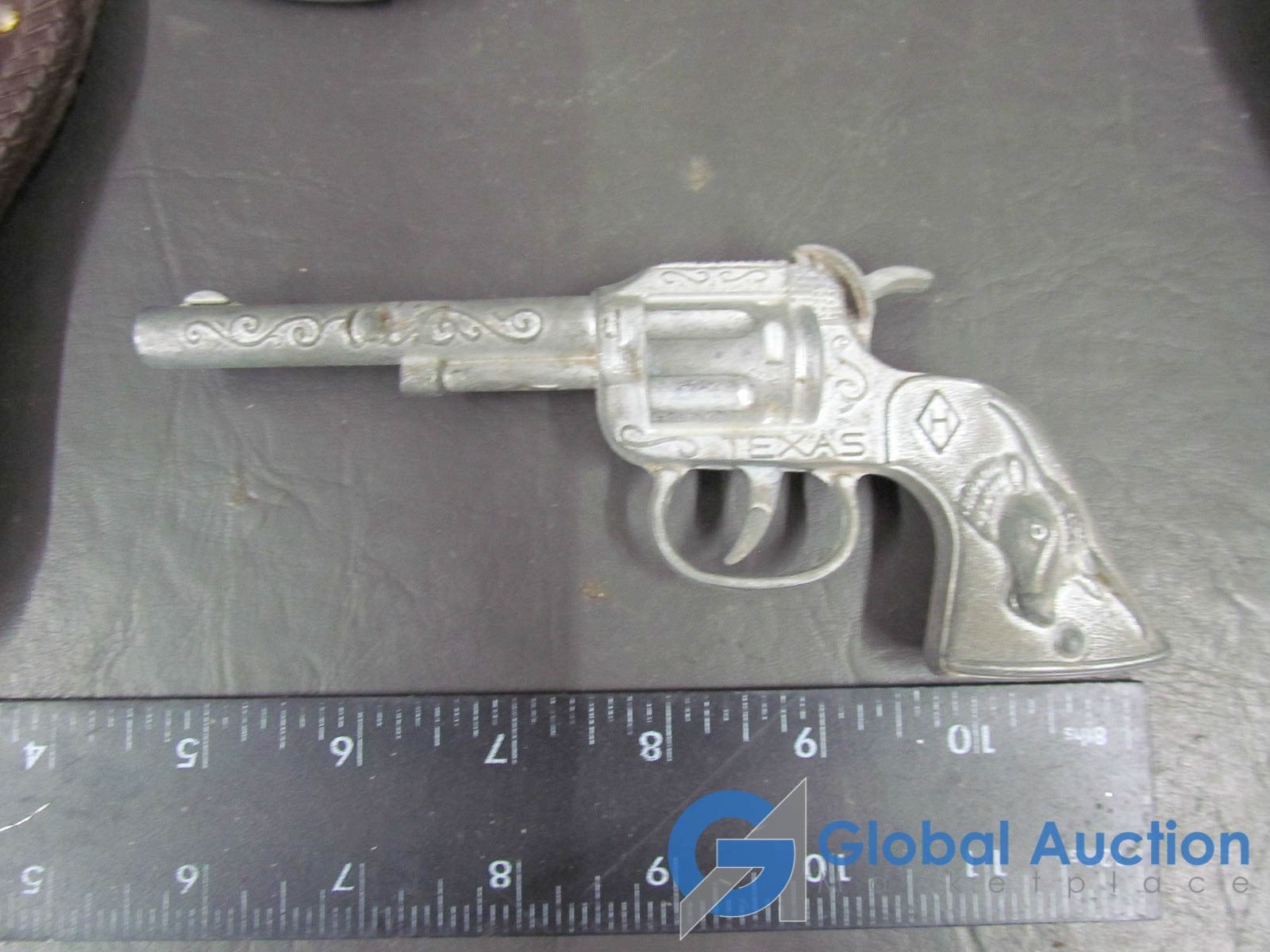 (2) Texas Metal Cap Guns w/ Double Holster