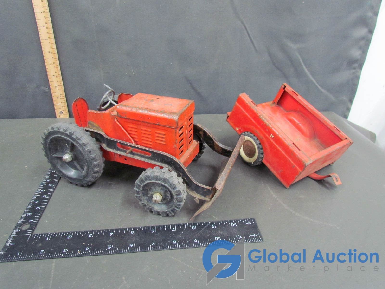 Lot 395 Vintage Toy Tractor & Wagon