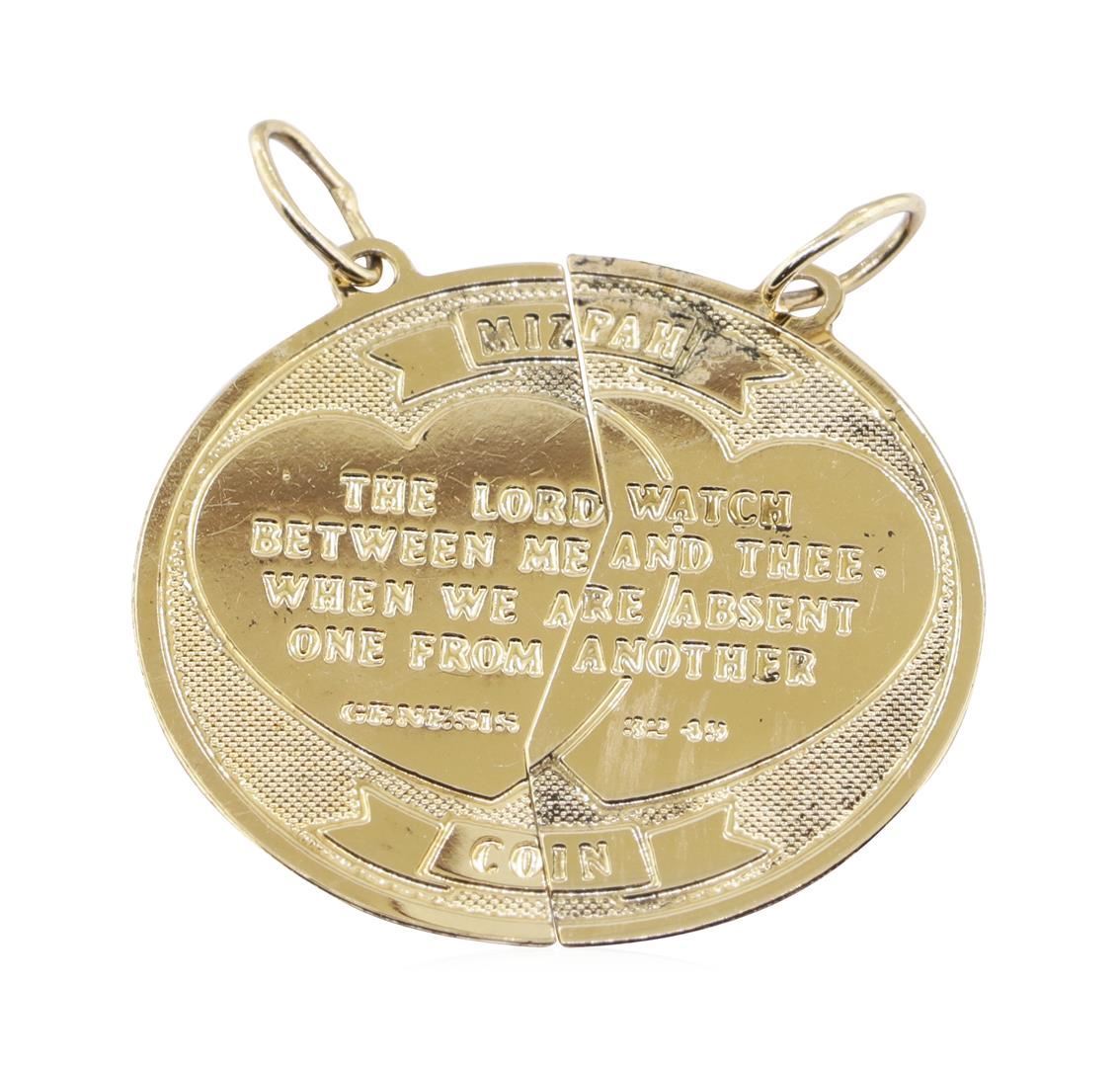 Lot 10 Mizpah Coin Pendant - 14KT Yellow Gold