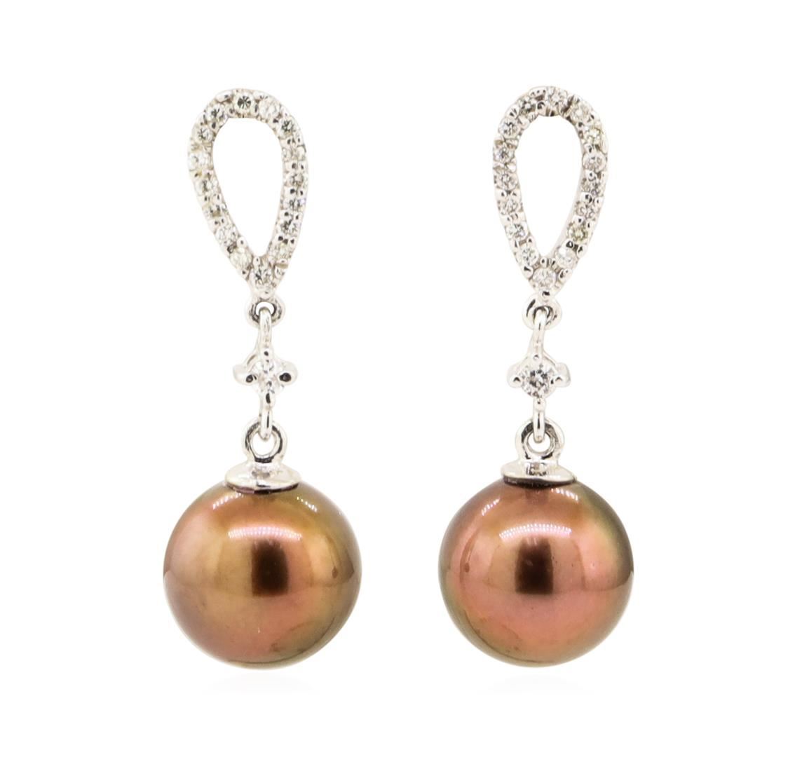 Lot 26 0.30 ctw Diamond and Chocolate Pearl Dangle Earrings - 14KT White Gold