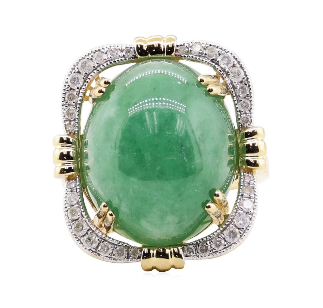 Lot 27 22.19 ctw Jadeite and Diamond Ring - 14KT Yellow Gold