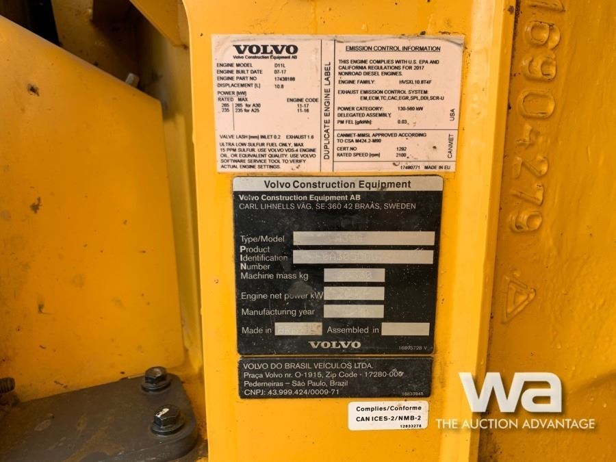 Lot 13 2017 VOLVO A30G 6X6 ARTICULATED DUMP TRUCK
