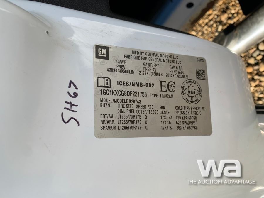 COLOR: WHITE RUNNING BOARDS VIN: 1GC1KXCG8DF221753 *AB REGISTERED