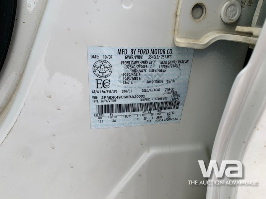 COLOR: WHITE LEATHER SEATS, FRONT HEATED SEATS, A/C, POWER WINDOWS, POWER SEATS, HITCH VIN: 2FMDK49C8BA20002 *AB REGISTERED