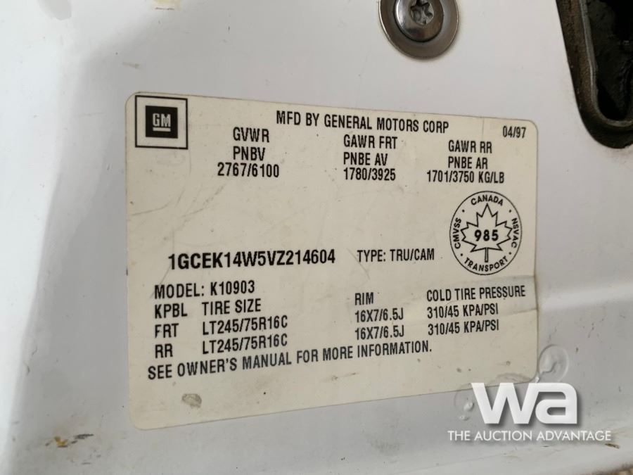 COLOR: WHITE 143,000KM ON GMC REMAN ENG., PILOT SIGN VIN: 1GCEK14W5VZ214604 *BC REGISTERED