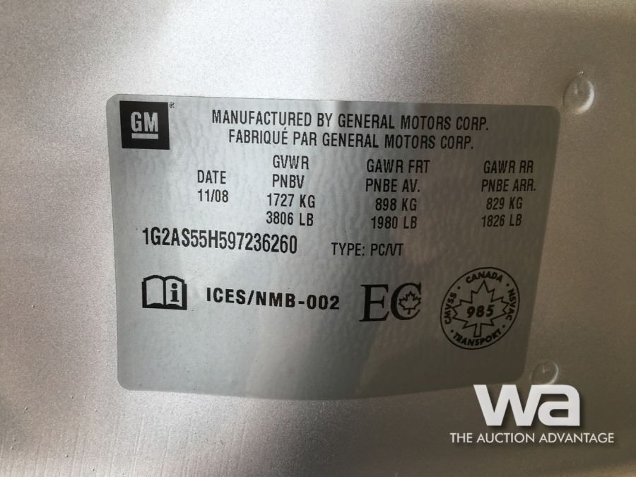 COLOR: GREY *NEW ALTERNATOR DRIVE BELT, *NEW BATTERY, *SET OF TIRES VIN: 1G2AS55H597236260 *AB REGISTERED
