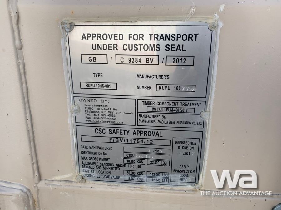 Lot 167 2012 8 X 9 FT. SHIPPING CONTAINER