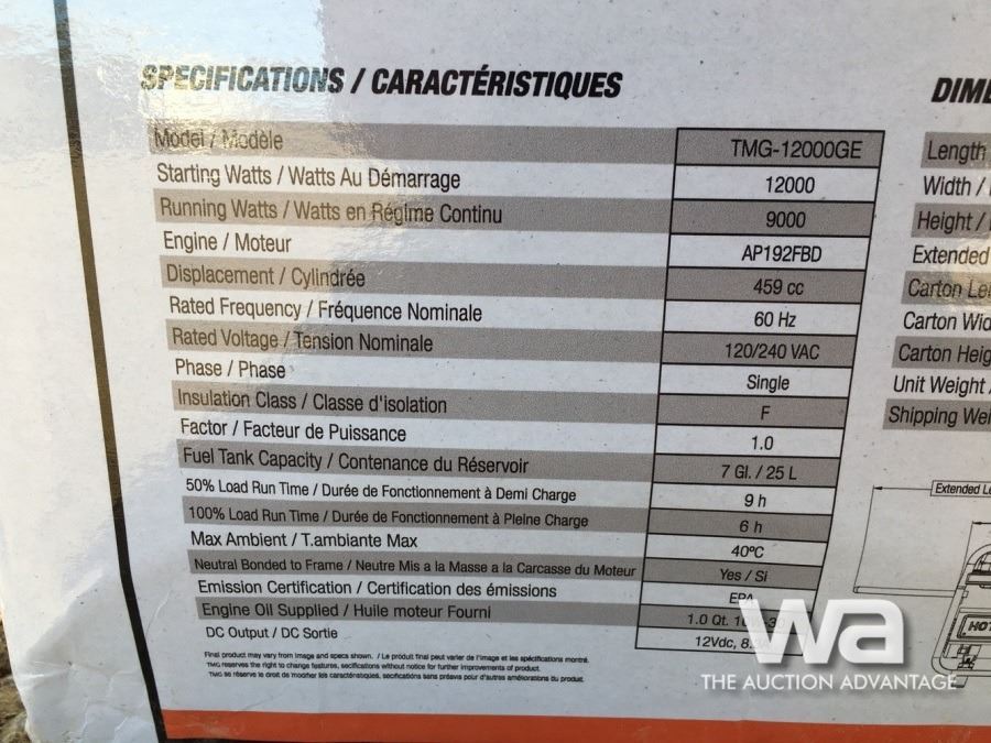 Lot 491 (UNUSED) 12000W GAS ENGINE GENERATOR