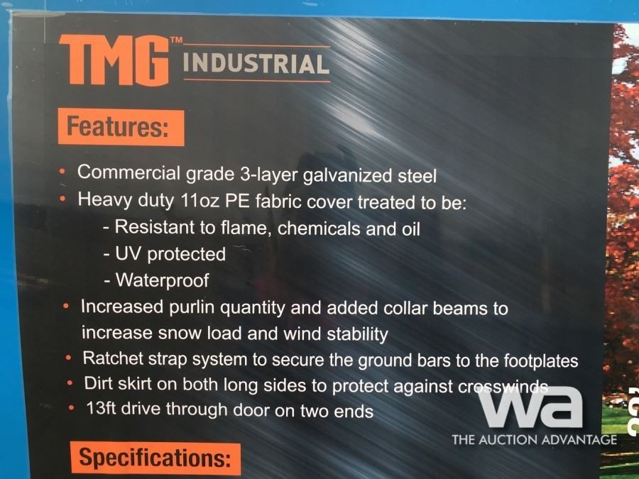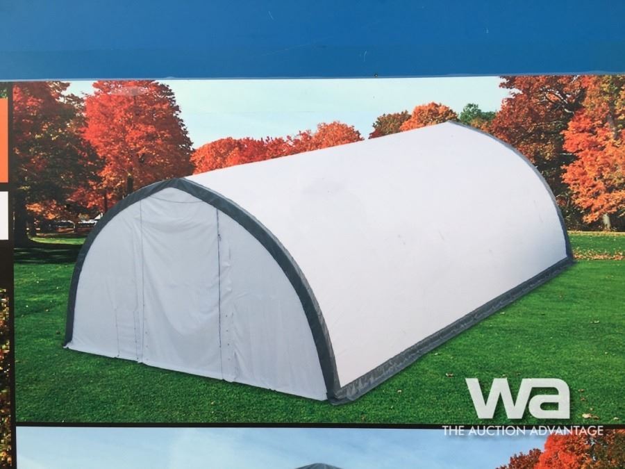COMMERCIAL FABRIC, WATERPROOF, UV AND FIRE RESISTANT, 13 X 16 FT. (WXH) DRIVE THROUGH DOORS AT TWO ENDS