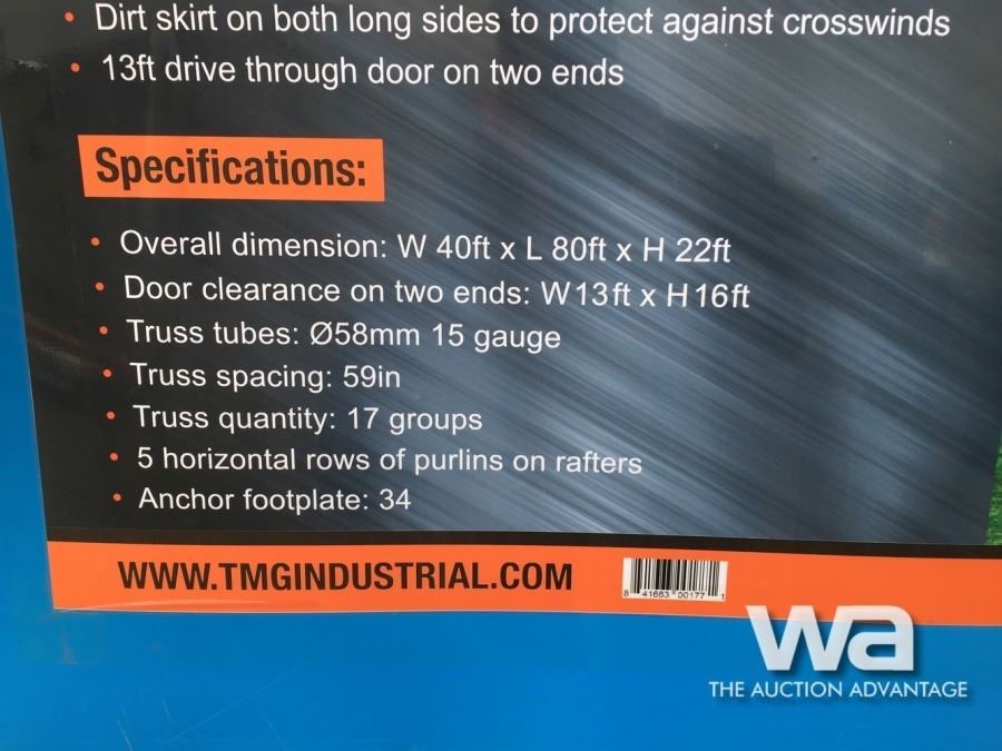 Lot 510 (UNUSED) PEAK CEILING 40 X 80 X 22 FT. SHELTER