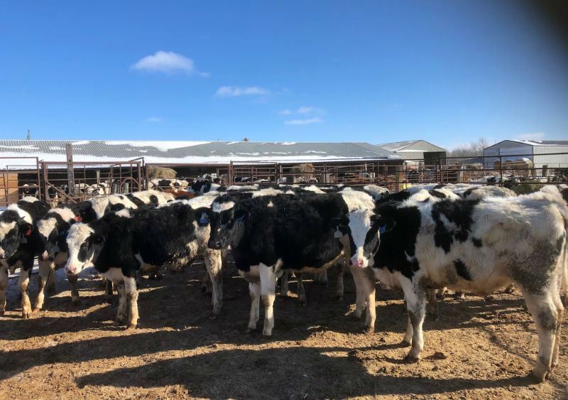 A good set of Holstein steers raised outside ready to go on heavy feed. +/- 5 after sort.