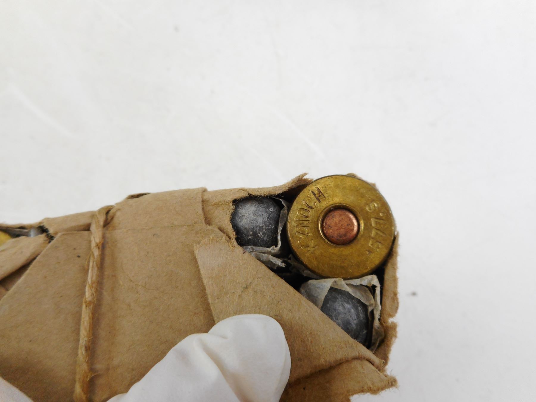 Lot 10049 .577 SOLID SNIDER, KYNOCH COLLECTIBLE AMMO IN DAMAGED PAPER WRAPPING