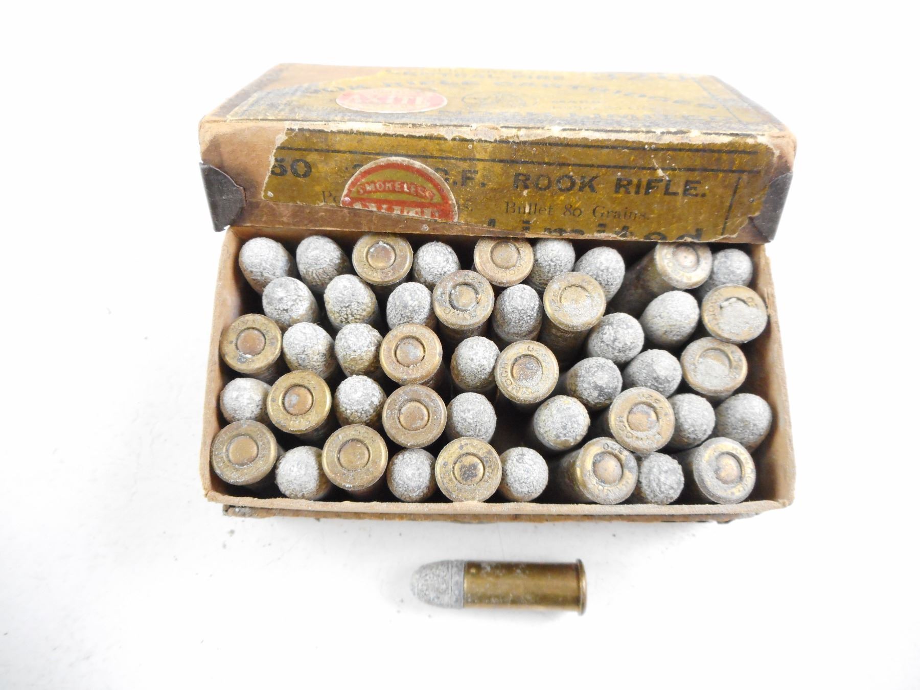.320 CAL, KYNOCH ROOK RIFLE COLLECTIBLE AMMO, BOX HAS SOME DAMAGE , 46 RNDS