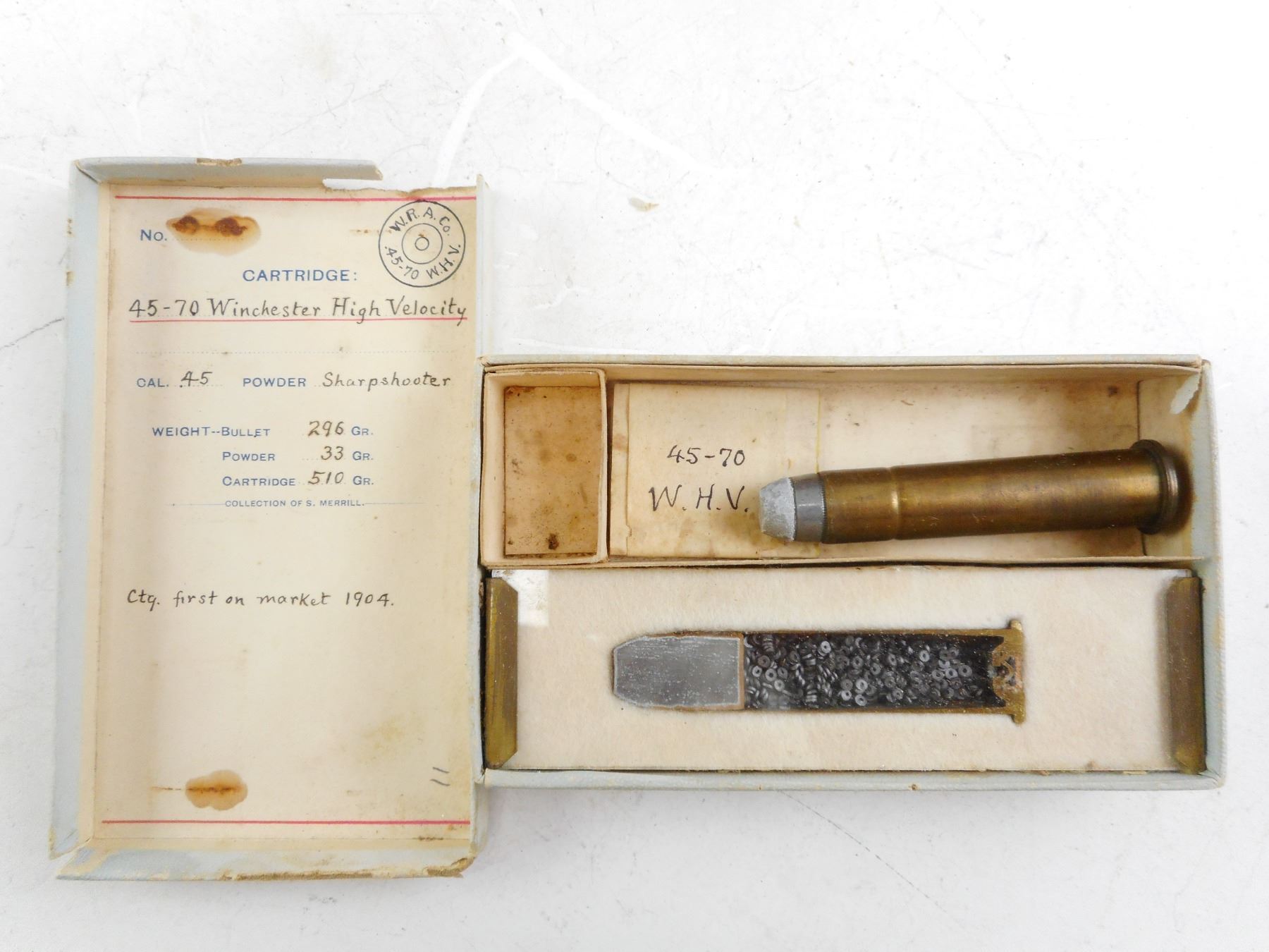 Lot 10077 WINCHESTER 45-70 HIGH VELOCITY COLLECTIBLE AMMO, AND SECTIONED RND