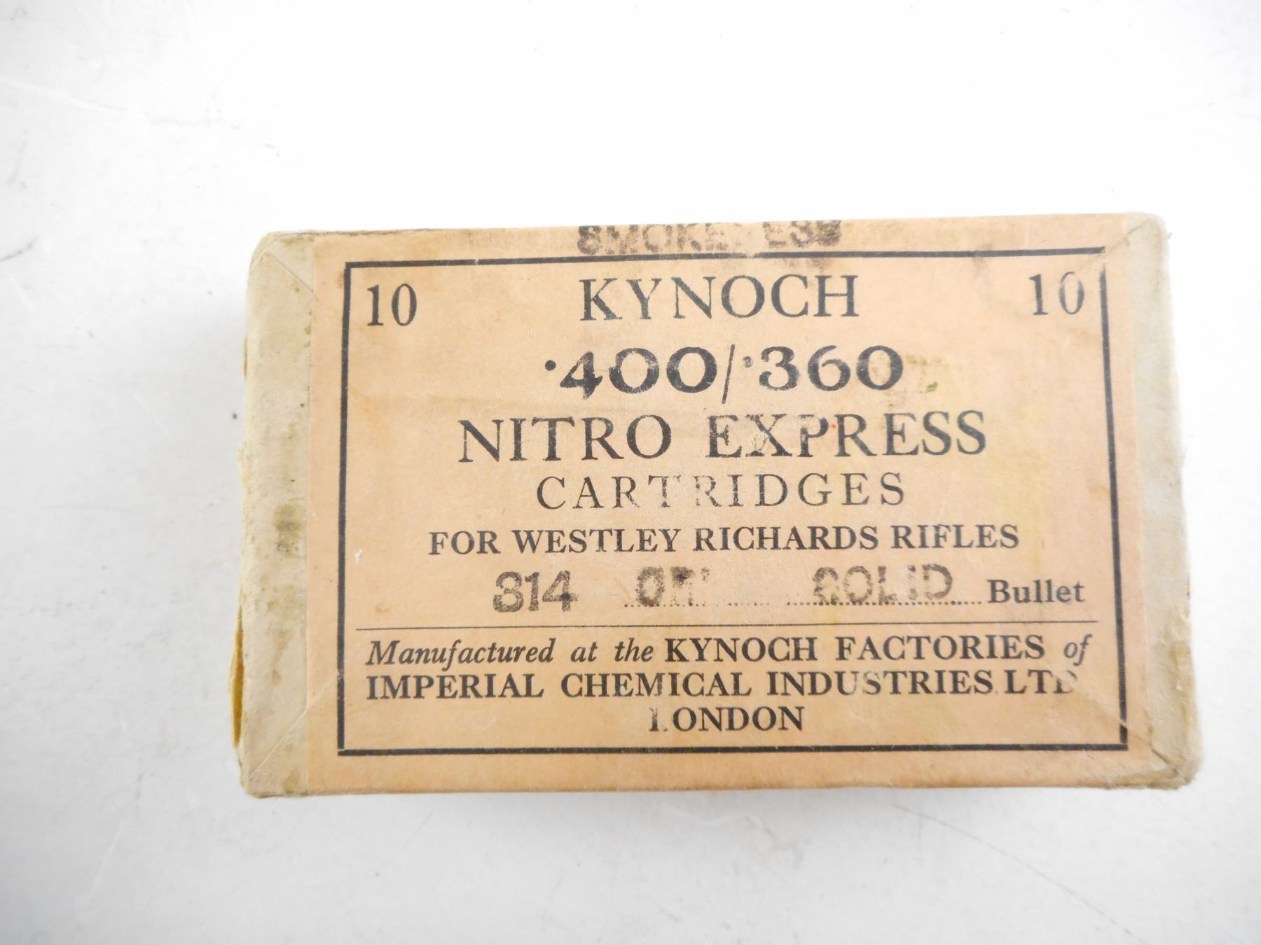 Lot 10101 .400/.360 NITRO EXPRESS, KYNOCH COLLECTIBLE AMMO, SEALED PACKAGE