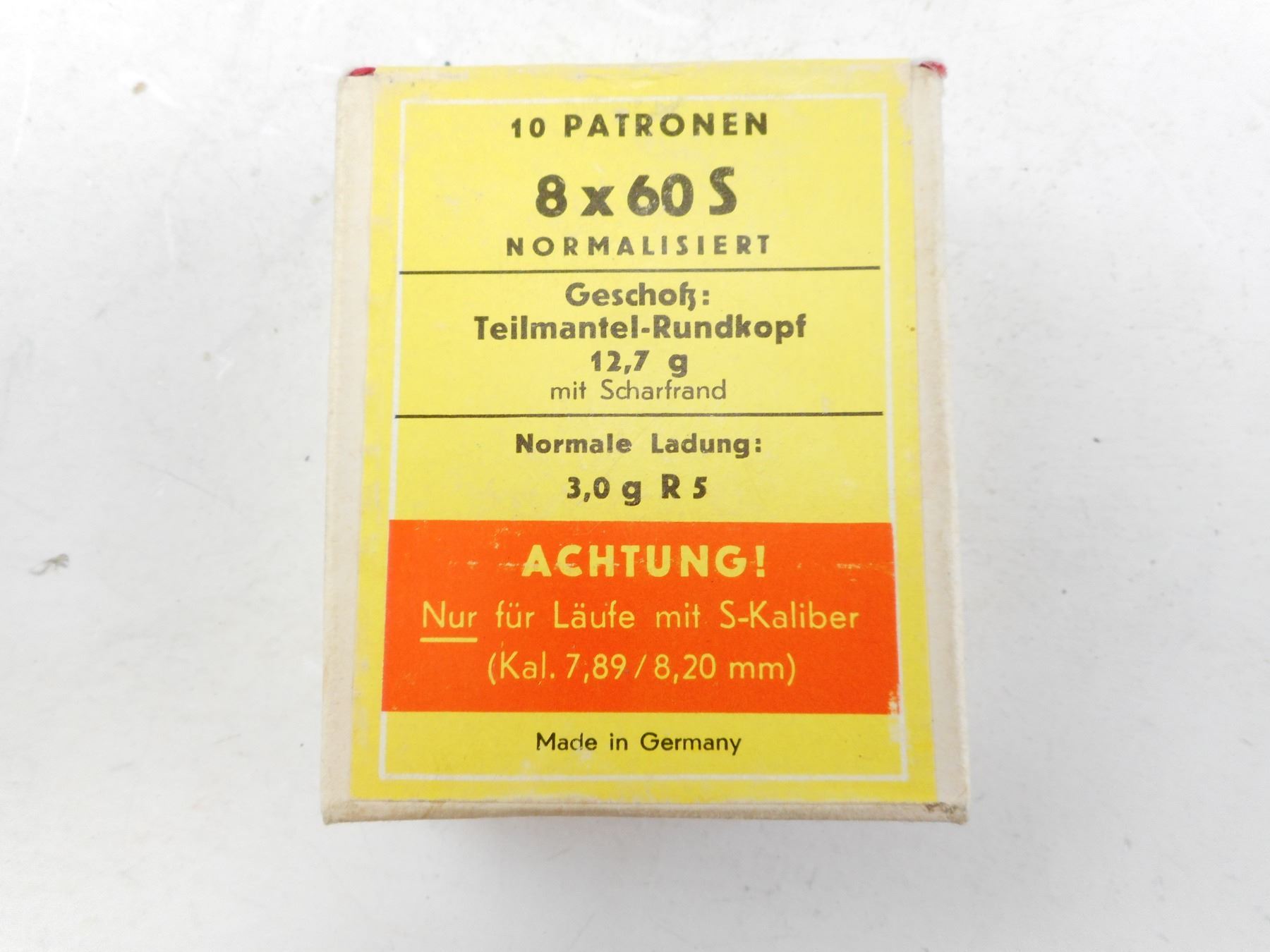 8X60S DWM AMMO, MADE IN GERMANY, COLLECTIBLE, SEALED BOX , 10 RNDS