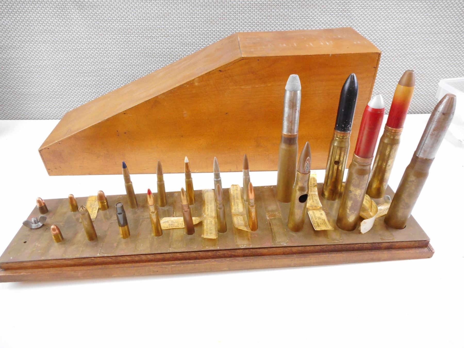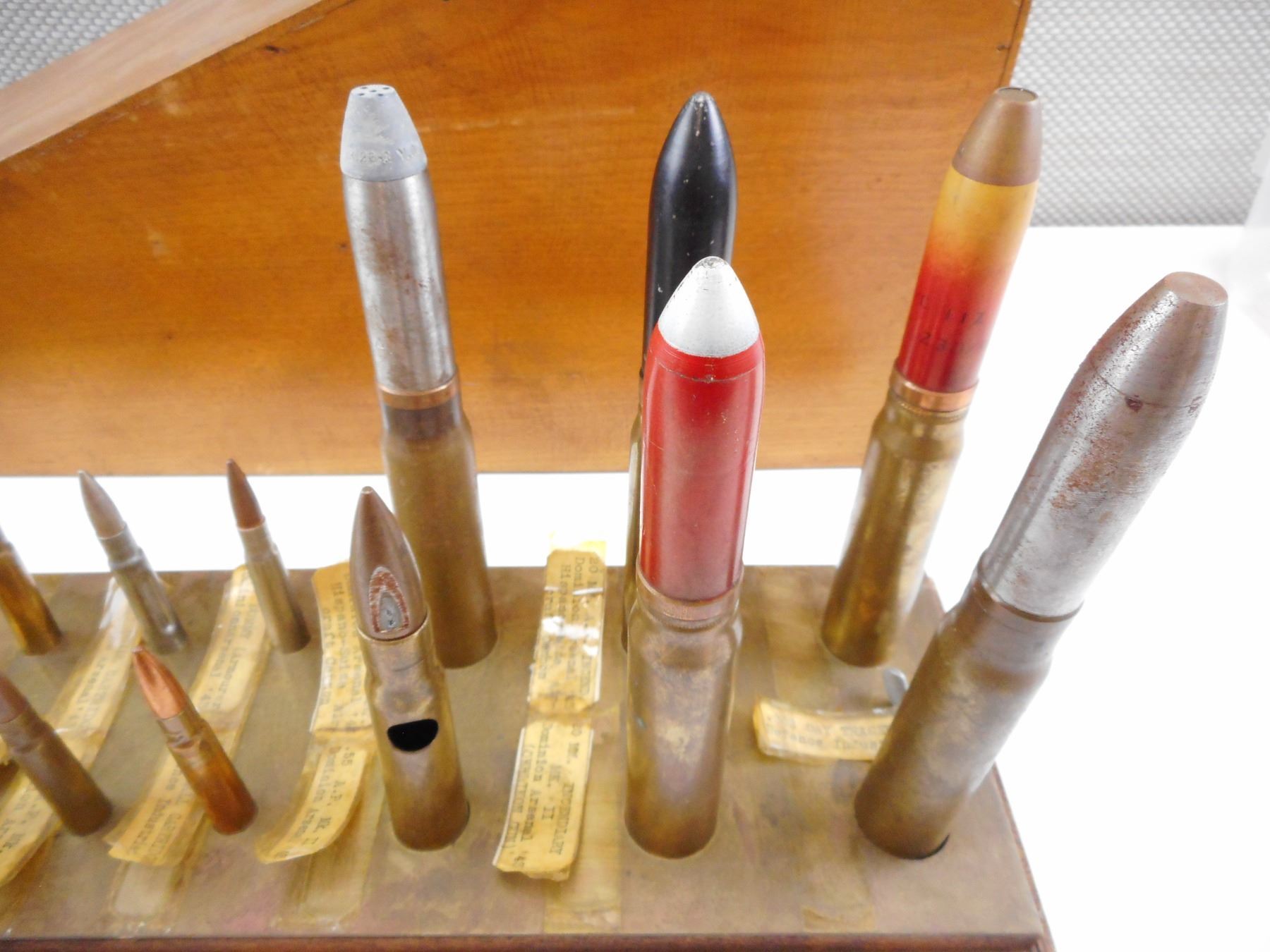 WWII SMALL ARMS DISPLAY IN CUSTOM BOX, COLLECTIBLE , 21 RNDS