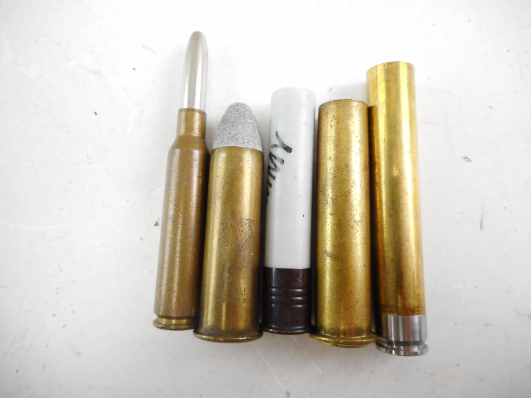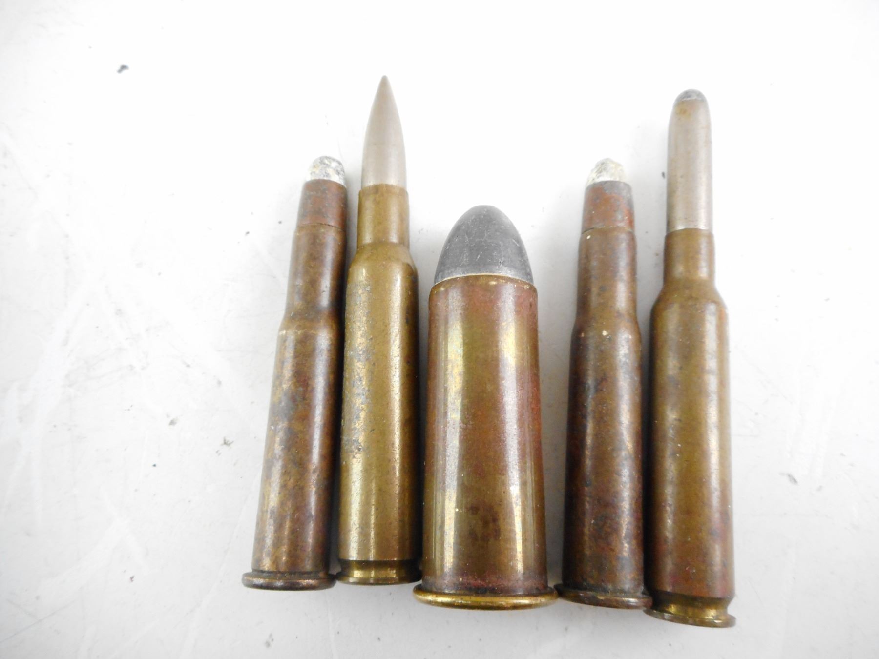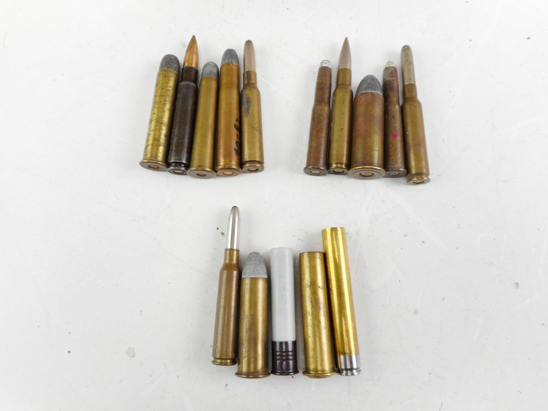 ASSORTED COLLECTIBLE AMMO, INCLUDING MILITARY , 13 RNDS, 2 BRASS CASES INCLUDING EMPTY .43 MAUSER CASE, SEE PHOTO FOR CONSIGNER DESCRITION