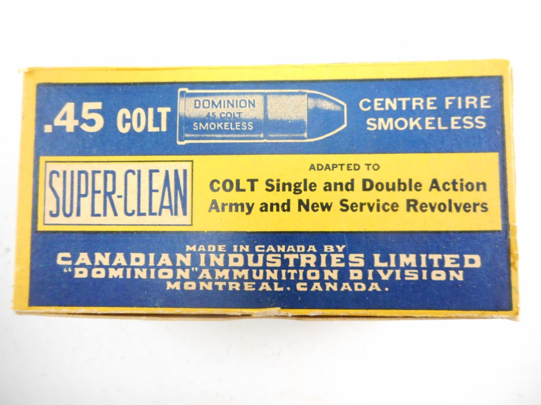 .45 COLT, DOMINION COLLECTIBLE AMMO IN SEALED BOX, PRE 1954 MANUFACTURE , 50 RNDS