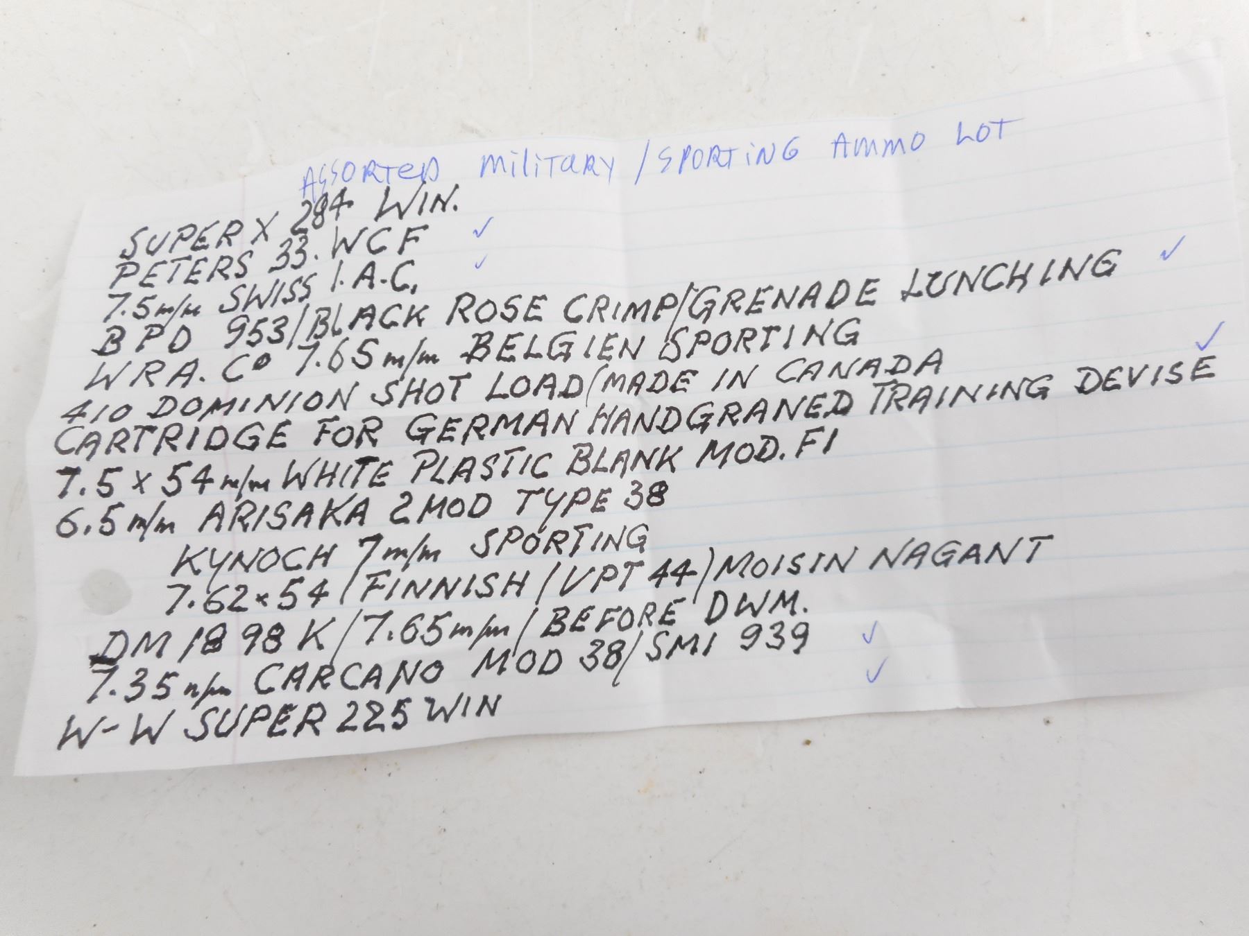 Lot 10293 ASSORTED MILITARY AND COMMERCIAL AMMO, INCLUDING 7.35 CARCANO MOD 38/SMI939, .33 PETERS WCF, 7.5MM S