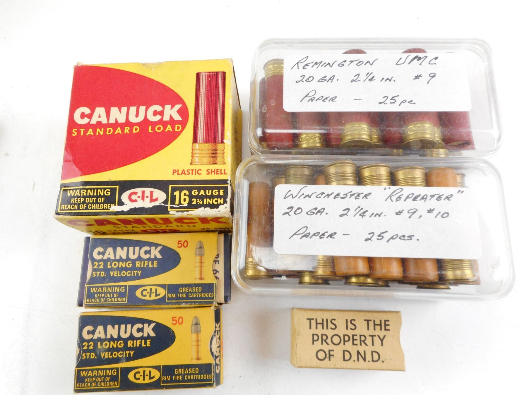 ASSORTED AMMO LOT , 76 RNDS INCLUDING 50 20GA SHOT SHELLS, 16 16GA SHOT SHELLS, 10 ASSORTED RNDS, EMPTY COLLECTIBLE BOXES