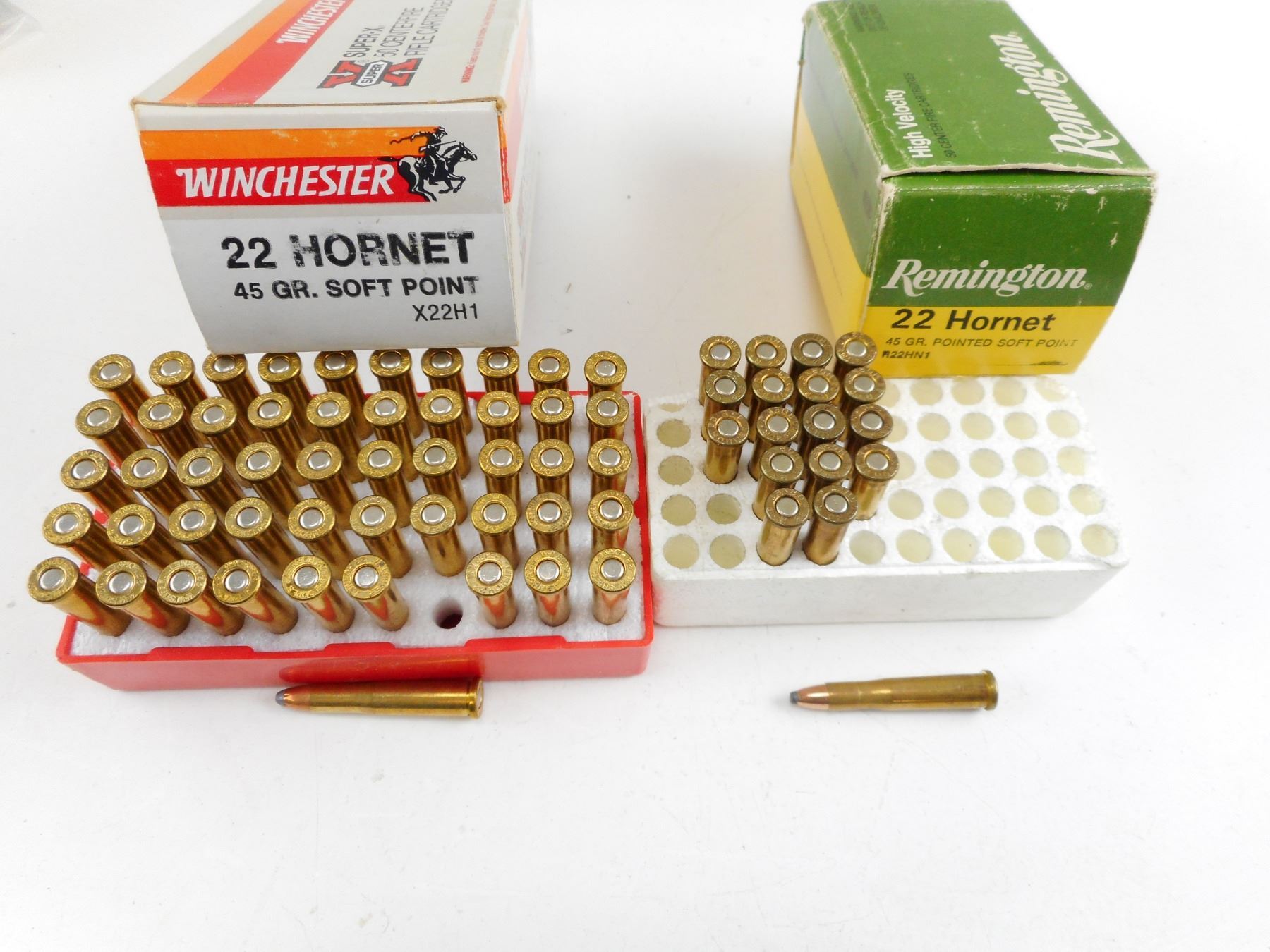 ASSORTED .22 HORNET AMMO, REMINGTON AND WINCHESTER , 68 RNDS