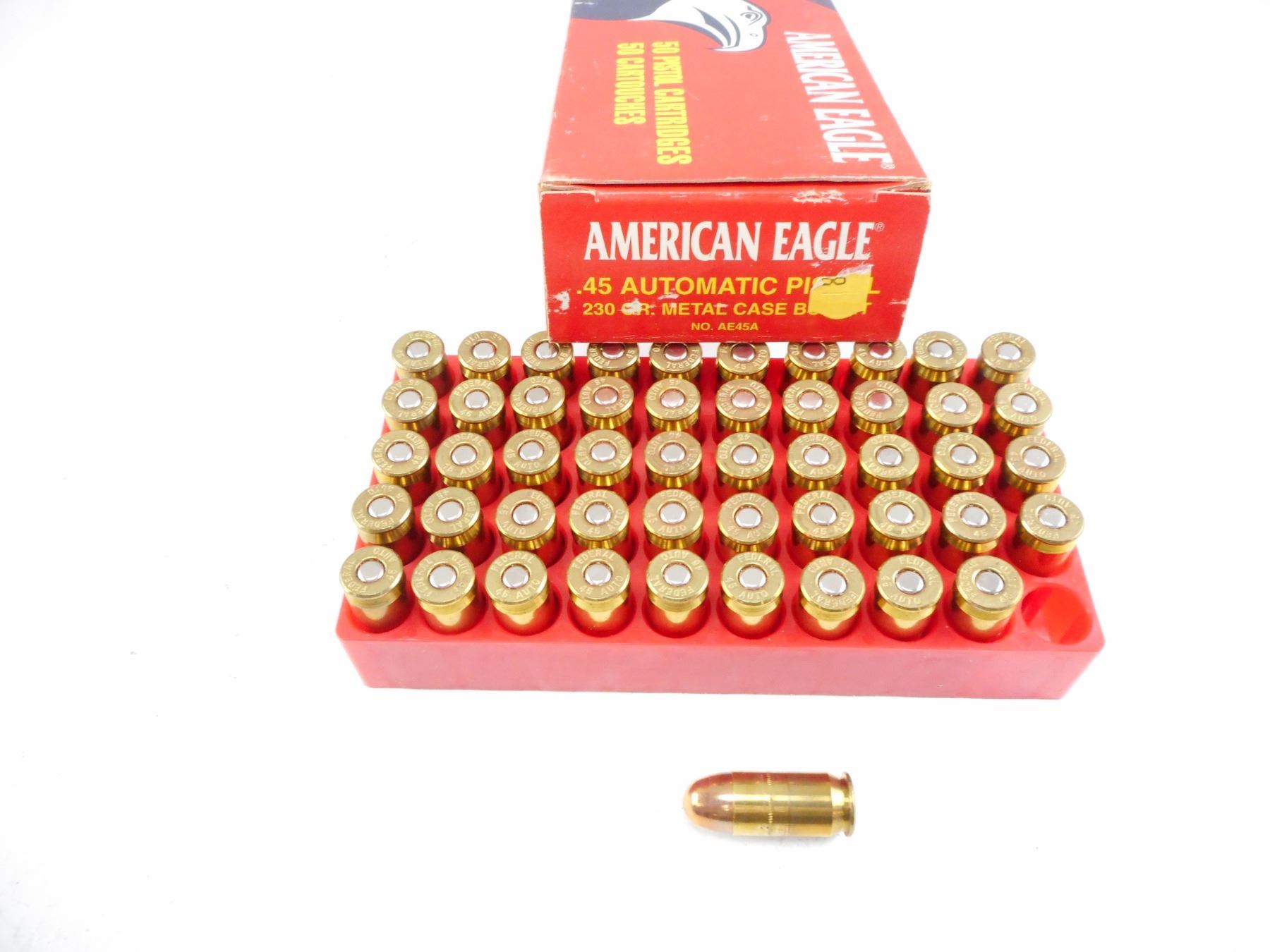 .45 AUTOMATIC PISTOL, AMERICAN EAGLE AMMO , 50 RNDS