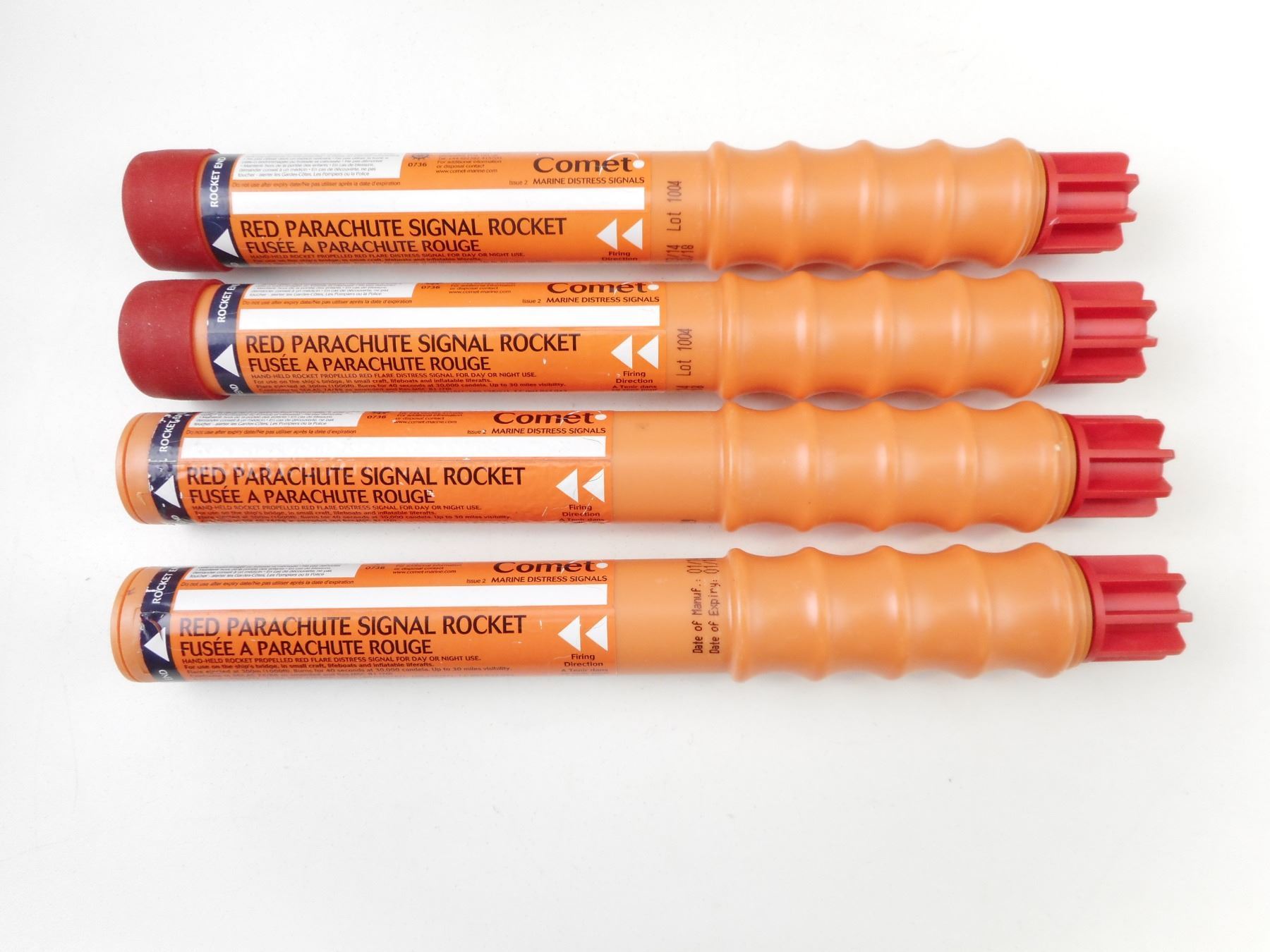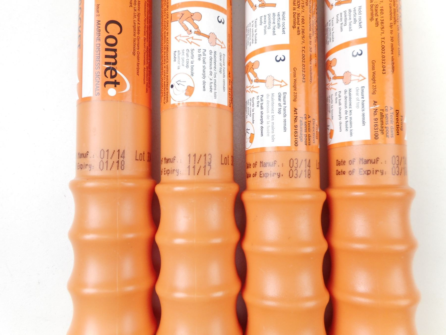 COMET MARINE DISTRESS SIGNALS, RED, VARIOUS MANUFACTURE DATES, VARIOUS EXPIRY DATES , 4 FLARES
