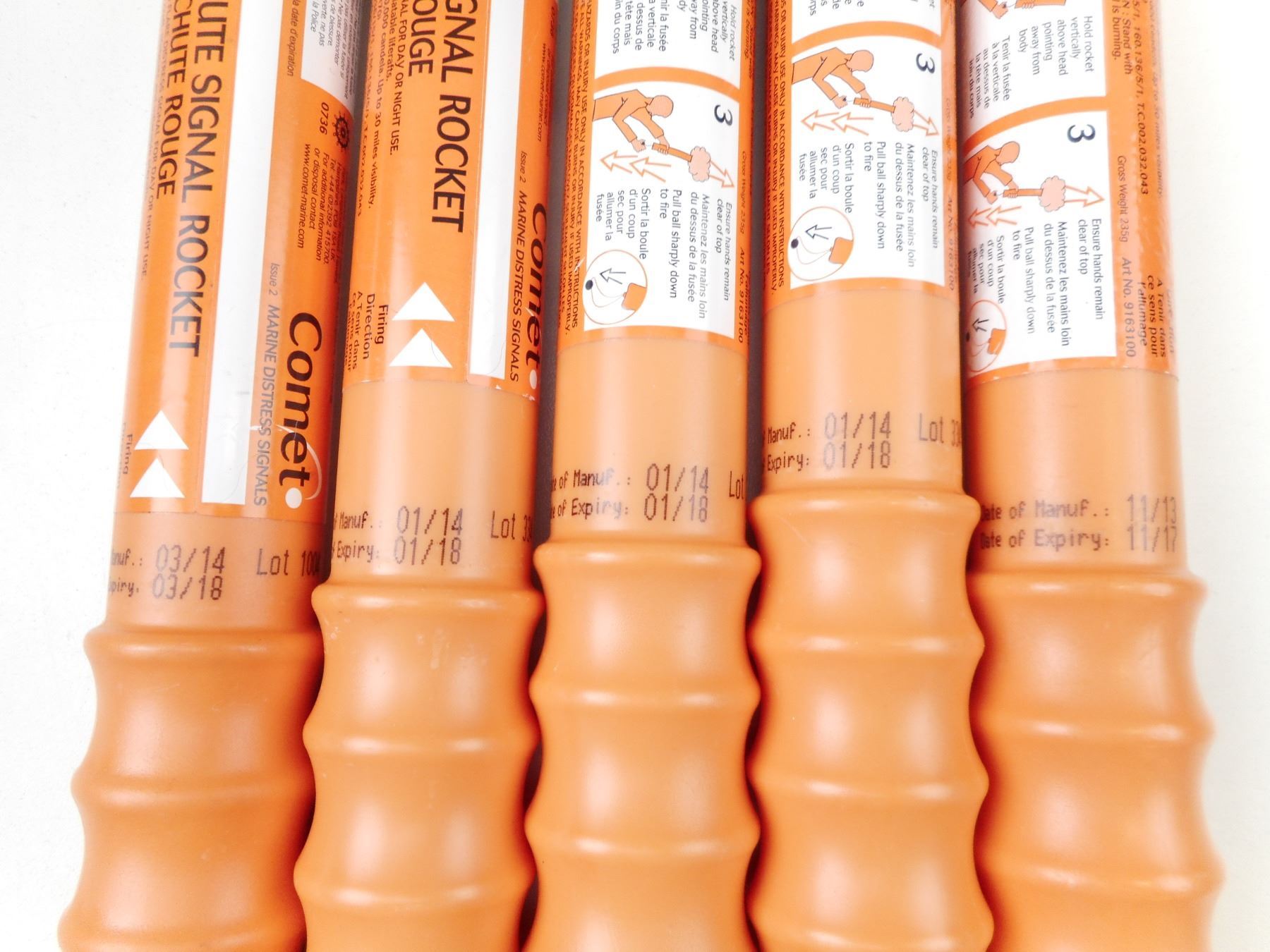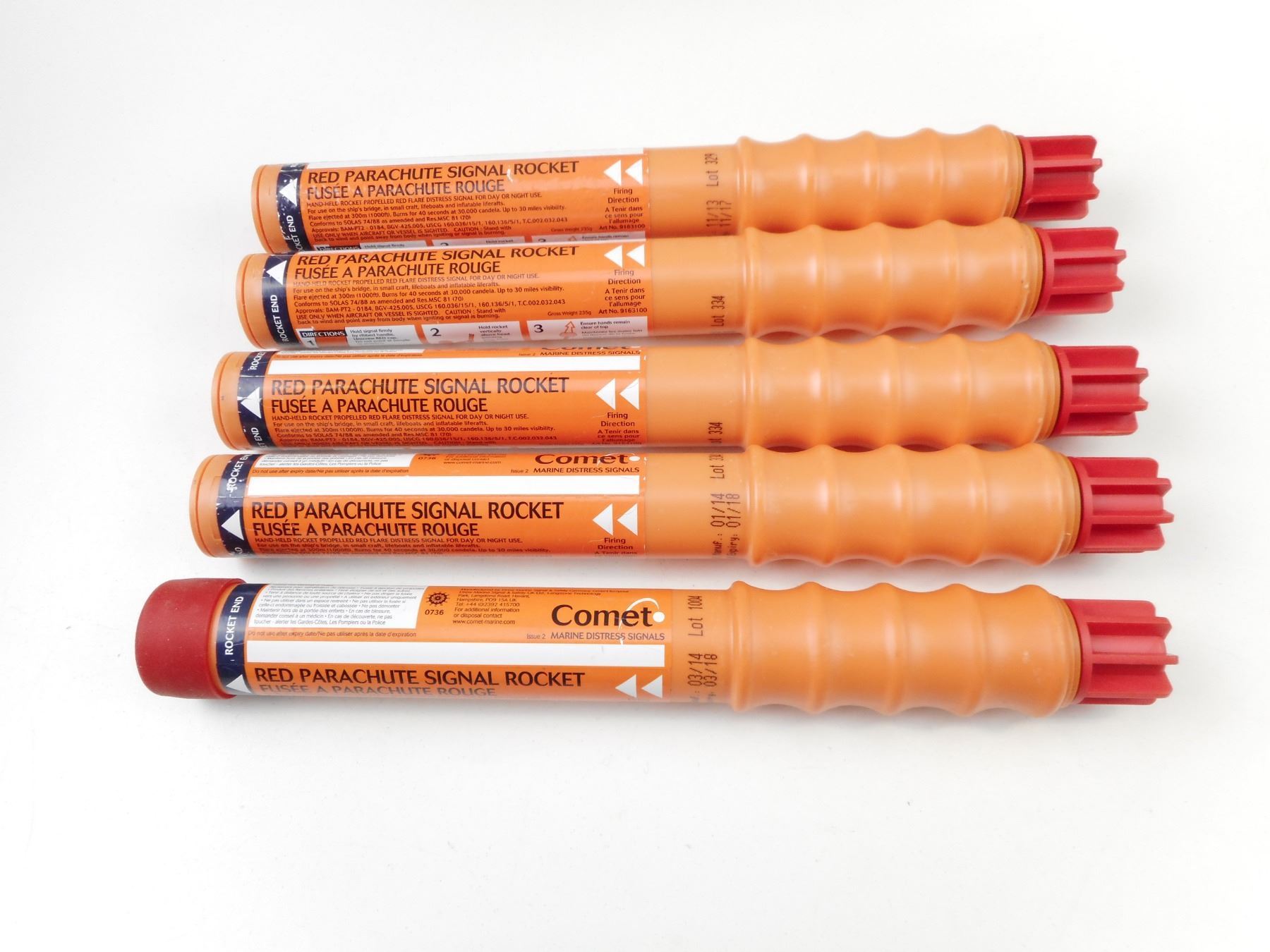 COMET MARINE DISTRESS SIGNALS, RED, VARIOUS MANUFACTURE DATES, VARIOUS EXPIRY DATES , 5 FLARES