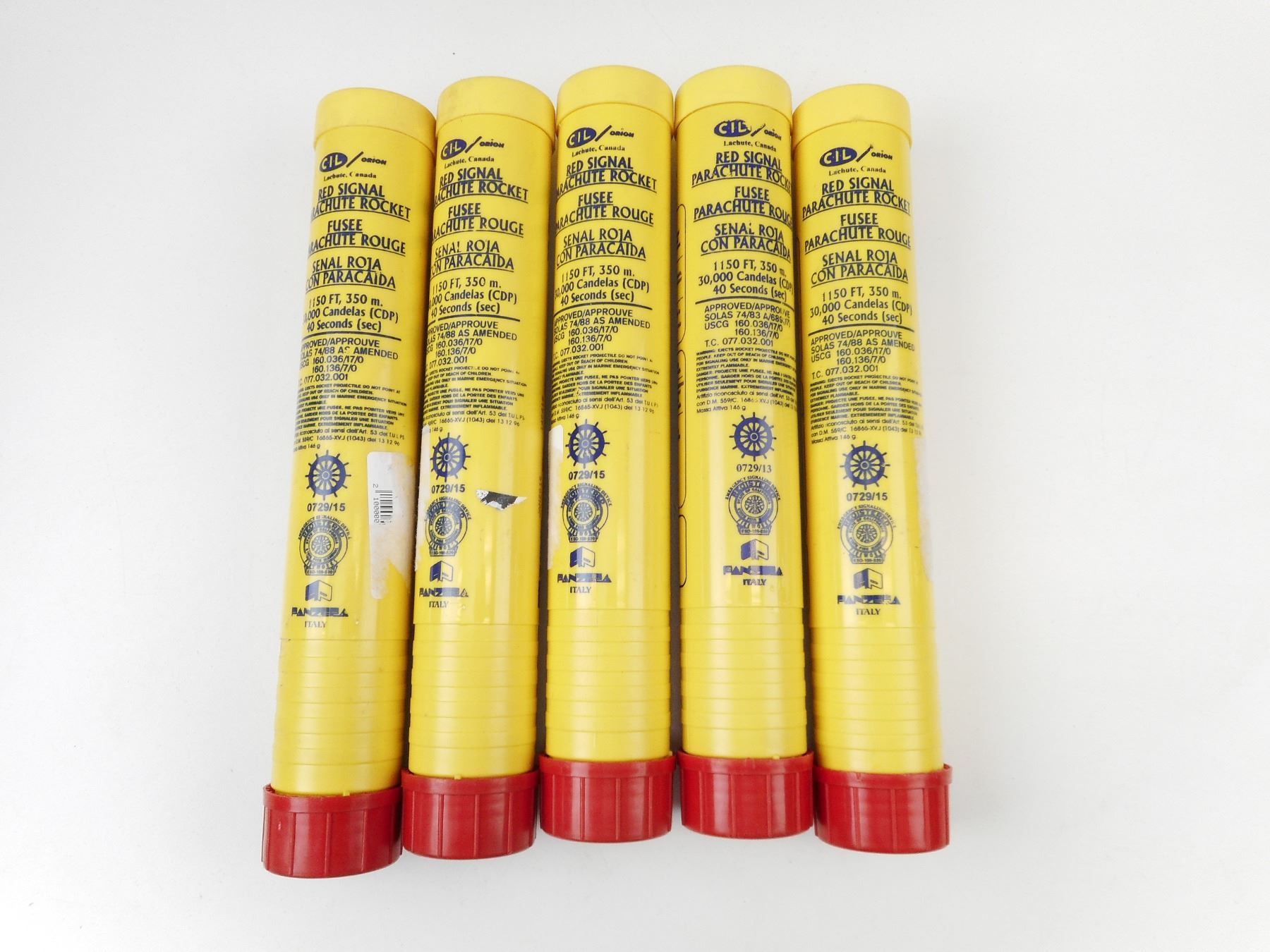 CIL RED SIGNAL PRACTICE ROCKET, VARIOUS MANUFACTURE DATES , 5 FLARES
