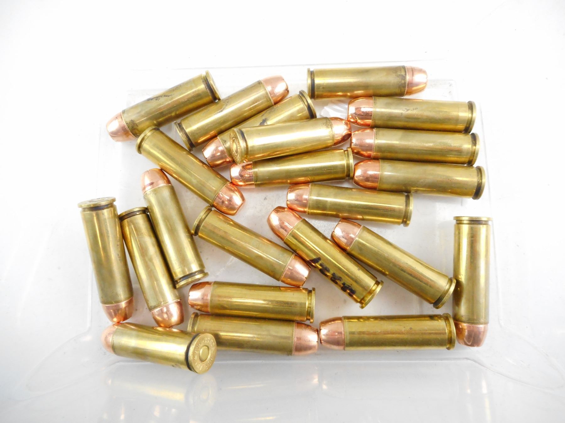 .500 S& W MAG RELOADED AMMO , 22 RNDS, MAY CONTAIN SOME FACTORY AMMO. THIS IS NON FACTORY RELOADS. IT IS BEING SOLD AS COMPONENTS ONLY. USE OTHER THAN DESCRIBED IS COMPLETELY AT YOUR RISK.