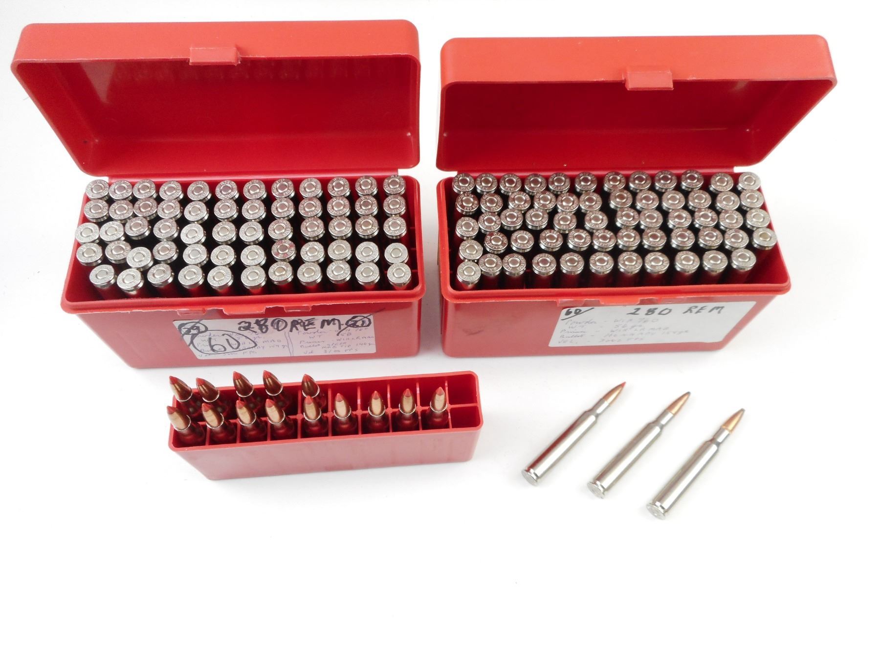 ASSORTED .280 REM, RELOADED AMMO IN PLASTIC AMMO CASES , 135 RNDS. THIS IS NON FACTORY RELOADS. IT IS BEING SOLD AS COMPONENTS ONLY. USE OTHER THAN DESCRIBED IS COMPLETELY AT YOUR RISK.