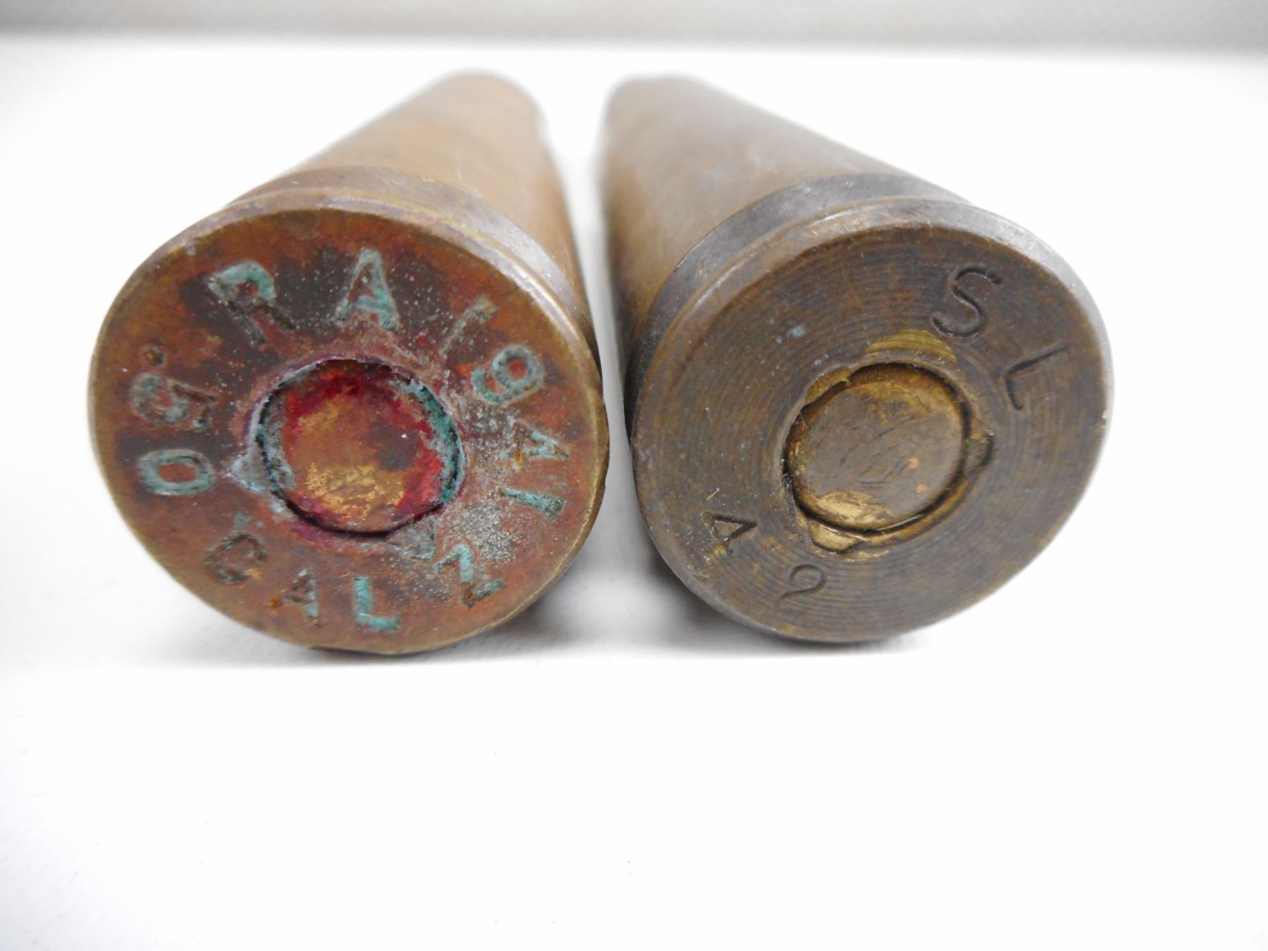 US .50M2 AMMO LOT , 2 RNDS TOTAL, INCLUDING AP, SL 1942 AND 1941 DATED