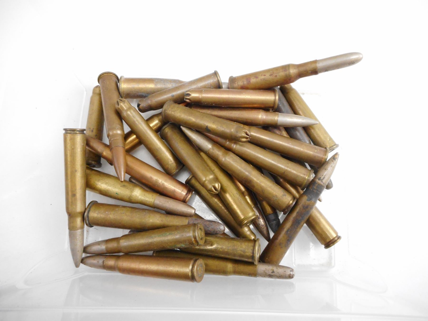 ASSORTED MILITARY AMMO LOT , 32 RNDS, INCLUDING .303 BRITISH, 8MM MAUSER, 30-06, 8MM LEBEL, 30-40 KRAG, FMJ, GALLERY, BLANKS