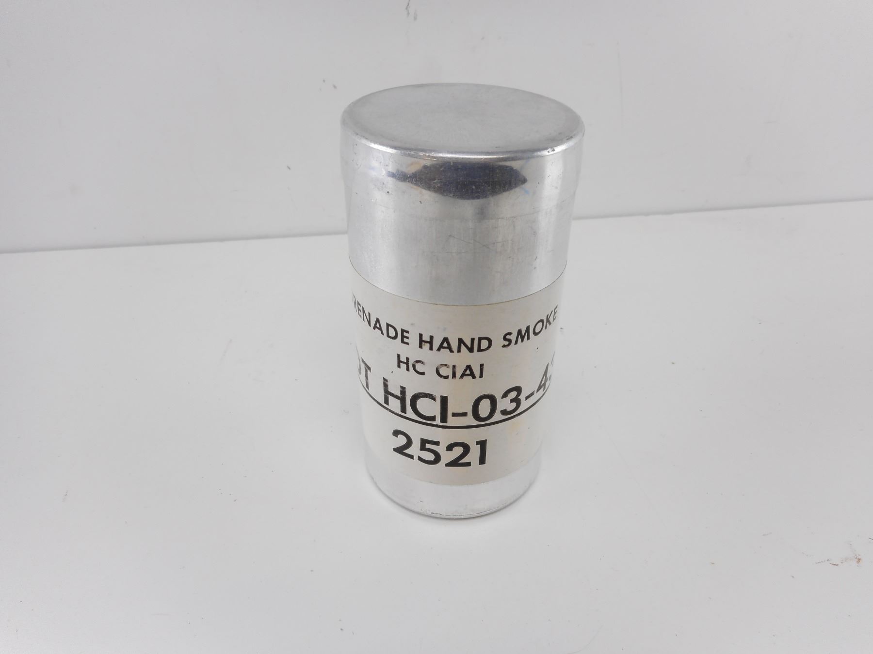 CDN MILITARY C1A2 SMOKE GRENADE IN ALUMINUM CANISTER , 2521 ON CAN AND C1A2 ON SMOKE GRENADE, LIVE