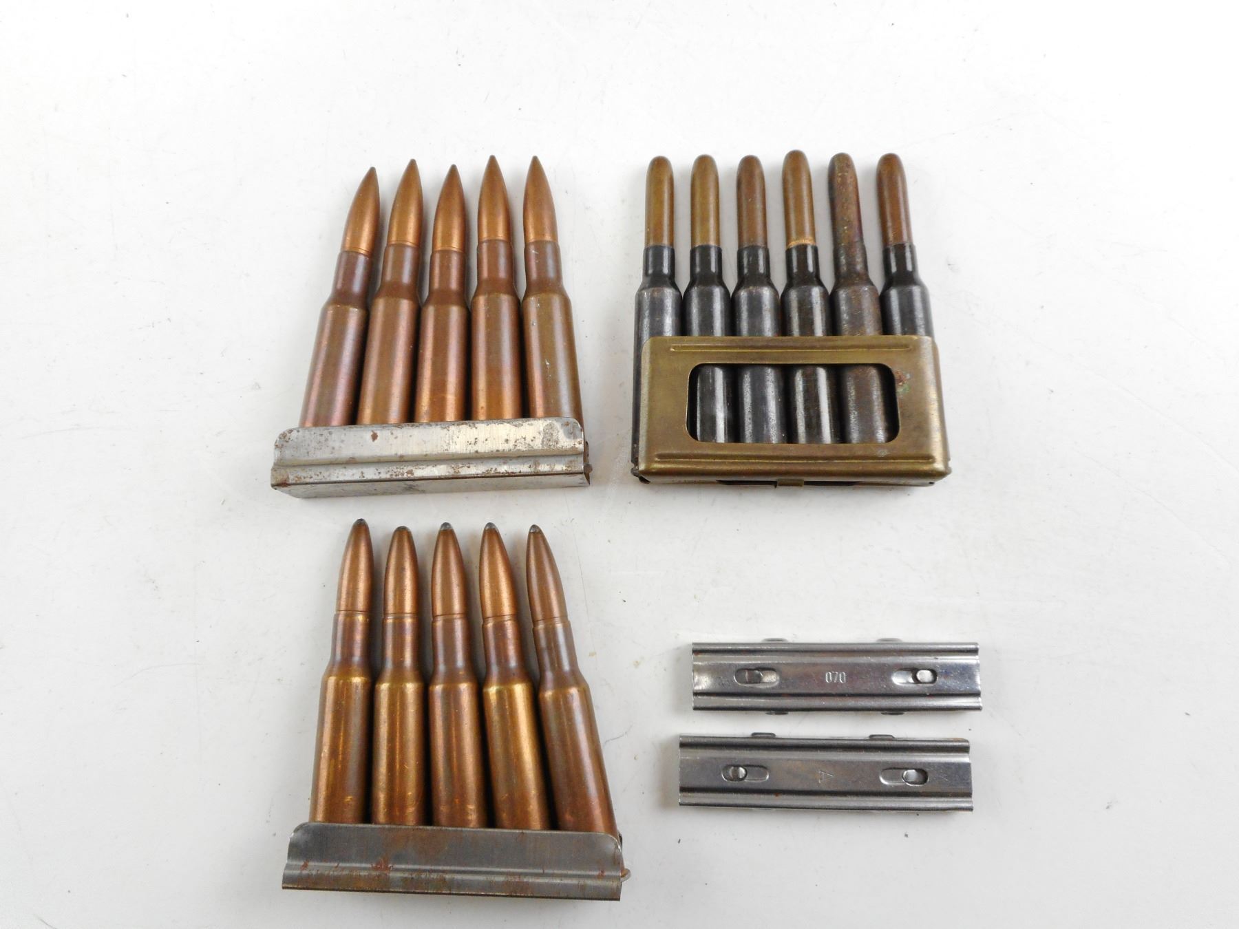 Lot 12081 ASSORTED MILITARY AMMO LOT, INCLUDING 7.62X54R, 5 BULLET TIPS MODIFIED, 6.5 CARCANO, STRIPPER CLIPS,