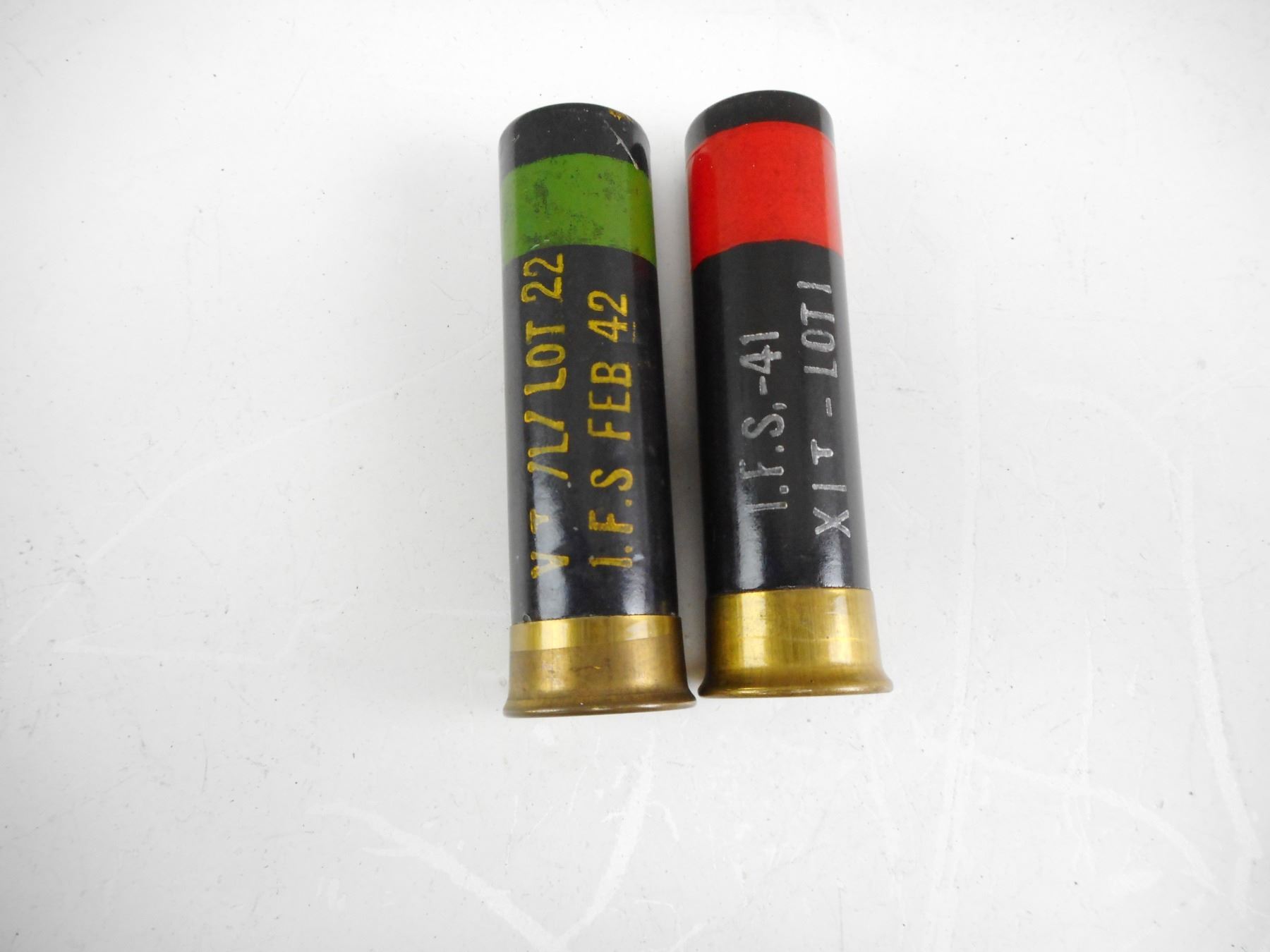 WWII 1" FLARE LOT, INCLUDING 1 RED MARKED I.F.S-41 XIT LOT 1, GREEN MARKED VT/L/LOT22 IFS FEB 42 , LOT OF 2 FLARES