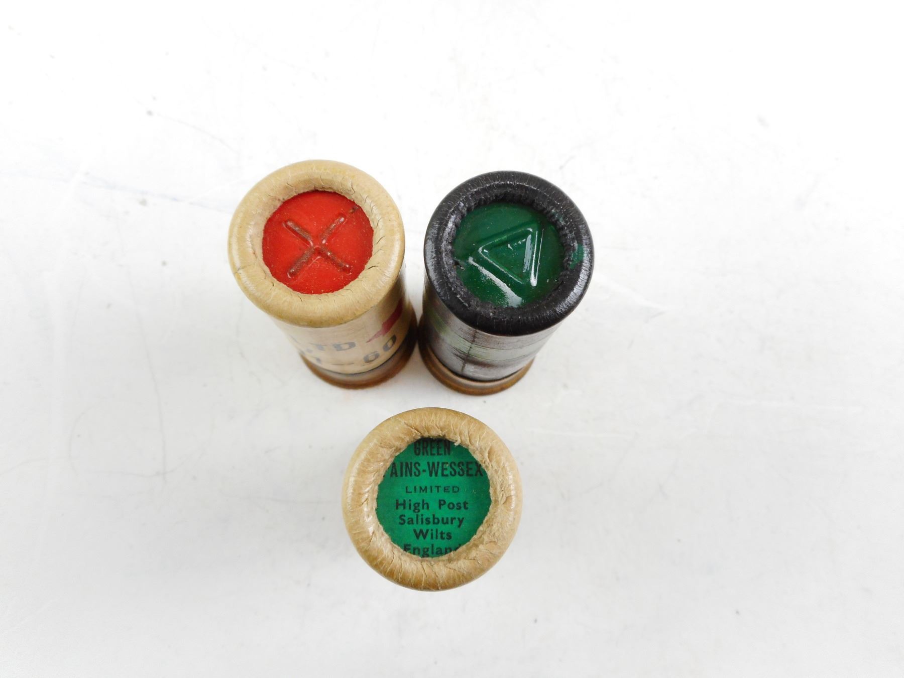 POST WAR 1" FLARE LOT , LOT OF 3 FLARES INCLUDING RED SPRA LTD LOT 7 FILLED 11-60 QW.15.A ICI 11/59, GREEN PAIN WESSEX HIGH POST SALISBURY WILKS, GREEN 12T TWH 3/52 LOT 17