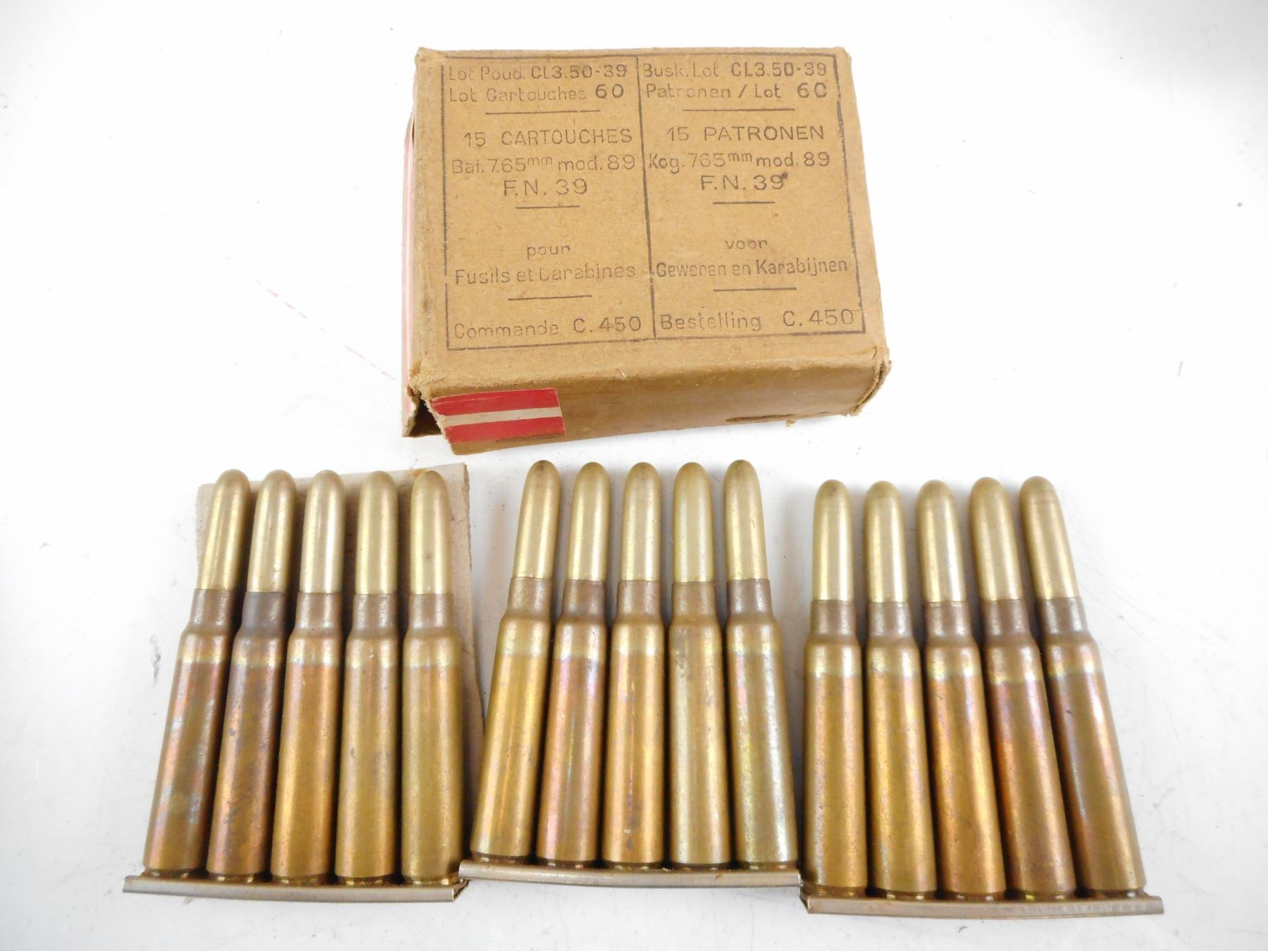 Lot 12113 7.65MM M89 MAUSER RND NOSE AMMO ON STRIPPER CLIPS, DATED 39, M91 MAUSER CLIPS