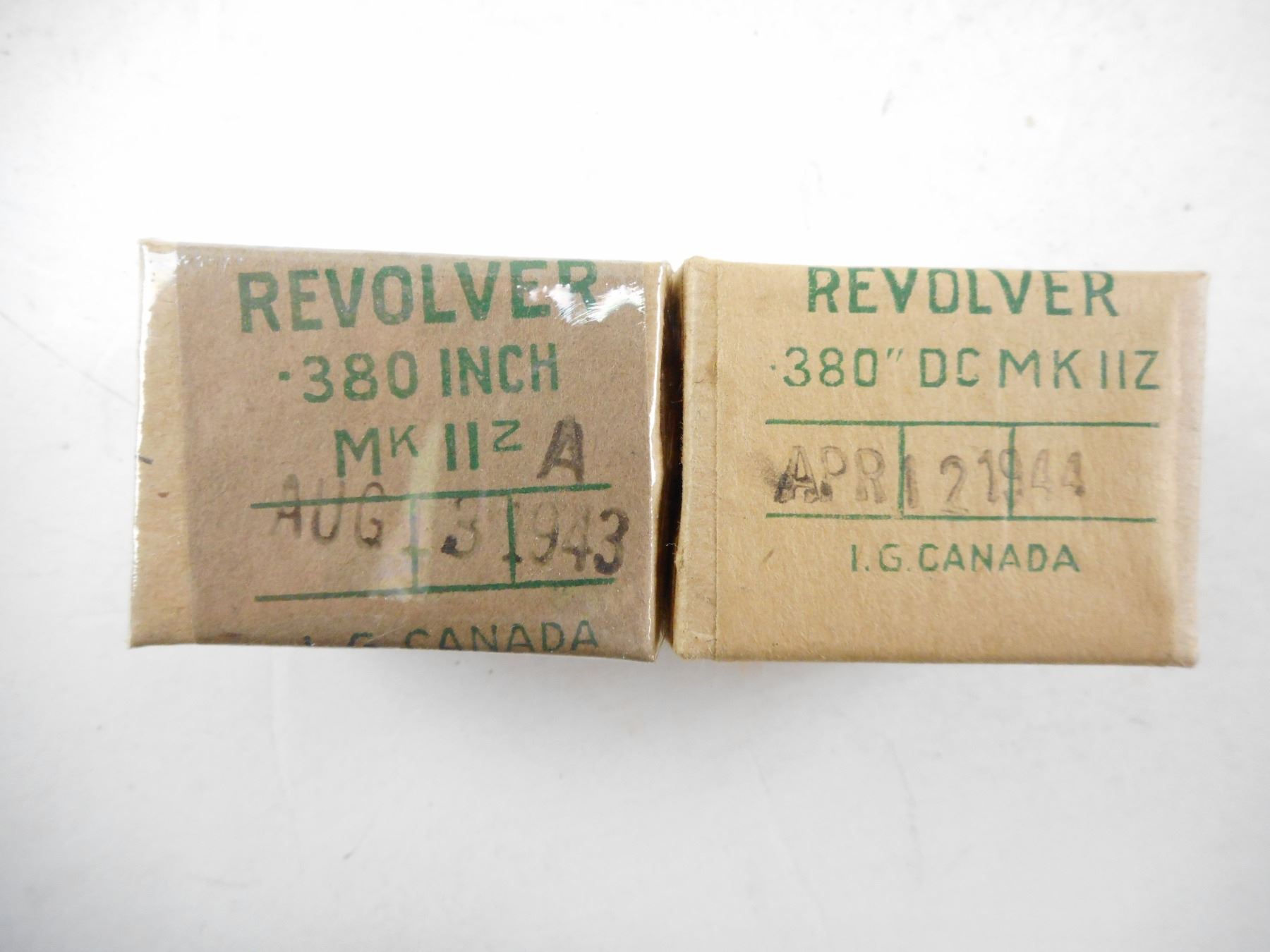 Lot 12142 .380 MKIIZ CANADIAN AMMO, APR 12 1944, SEALED BOXES