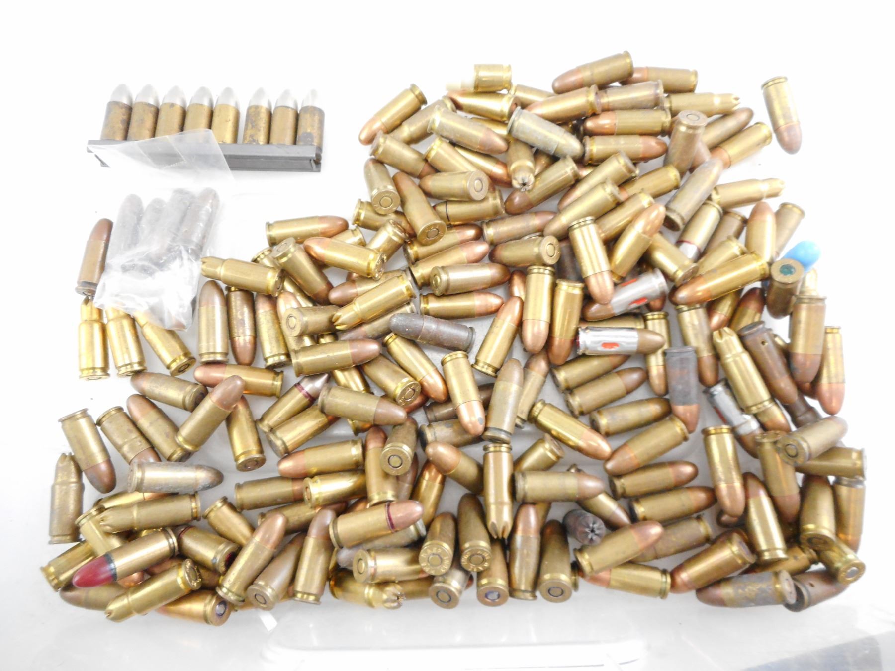 ASSORTED LOT 9MM AMMO, INCLUDING CANADIAN, INCLUDES 1 STRIPPER CLIP, SOME BLANKS , 208 RNDS