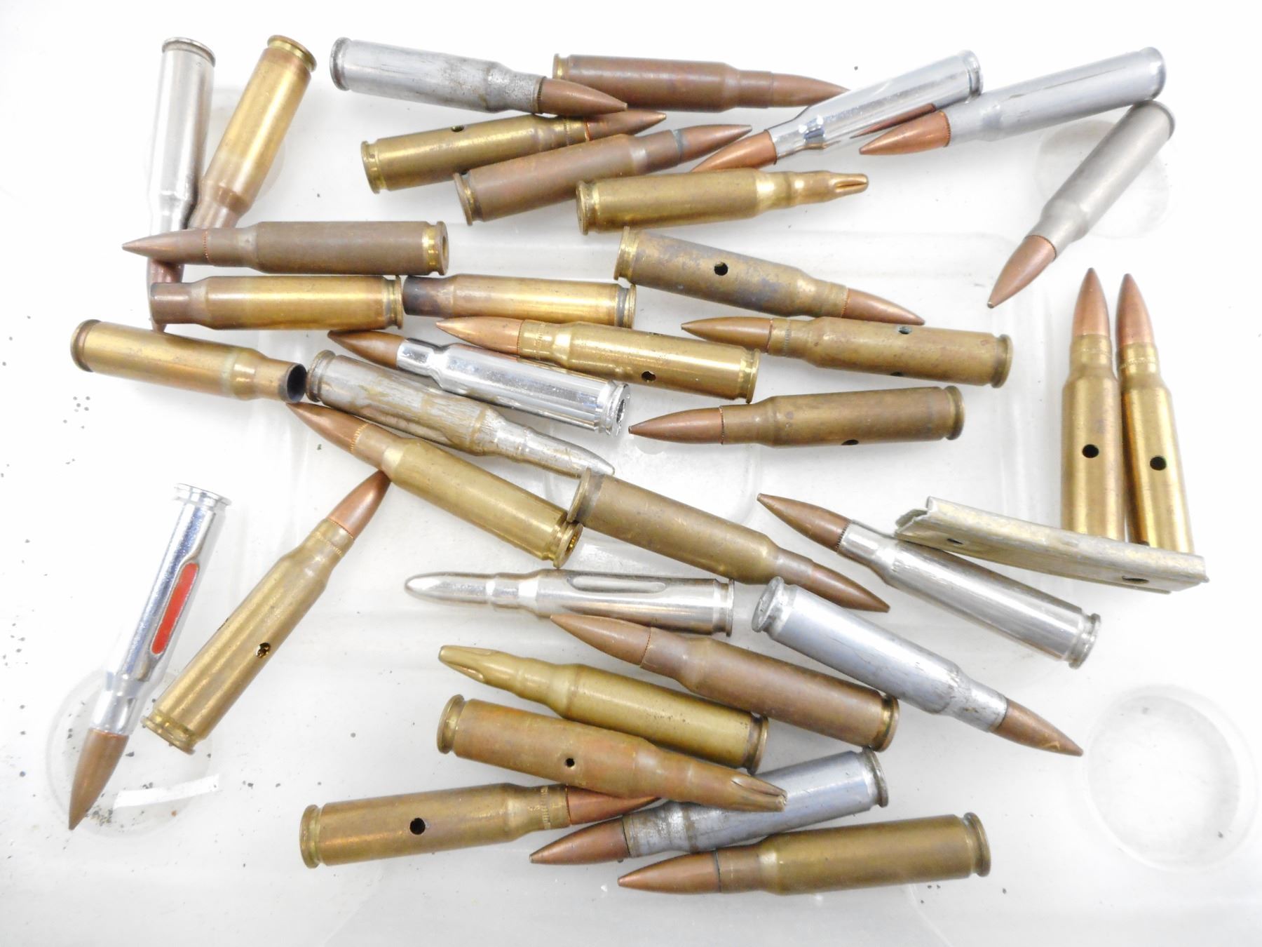 CDN MILITARY 7.62 NATO DUMMY RND LOT, MARKED IVI DA, CONTAINS SOME OTHER COUNTRIES , 35 RNDS INCLUDING BALL, BLANKS, STEEL, SOME FIRED BRASS CASES