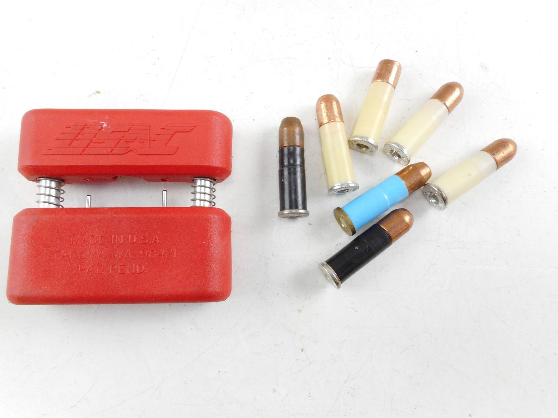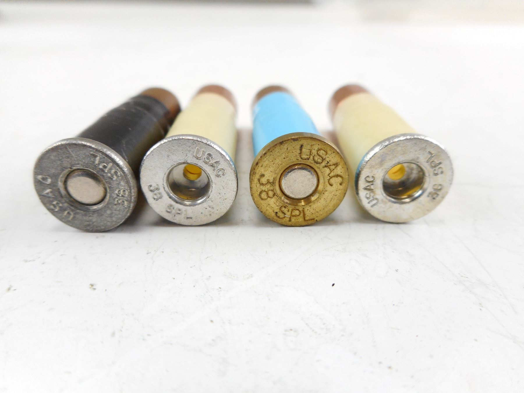 USAC 38 SPECIAL AMMO AND RELOADING TOOL, PLASTIC CASES, ASSORTED BULLETS , 7 RNDS