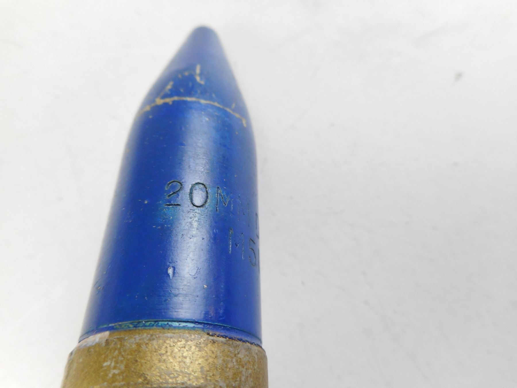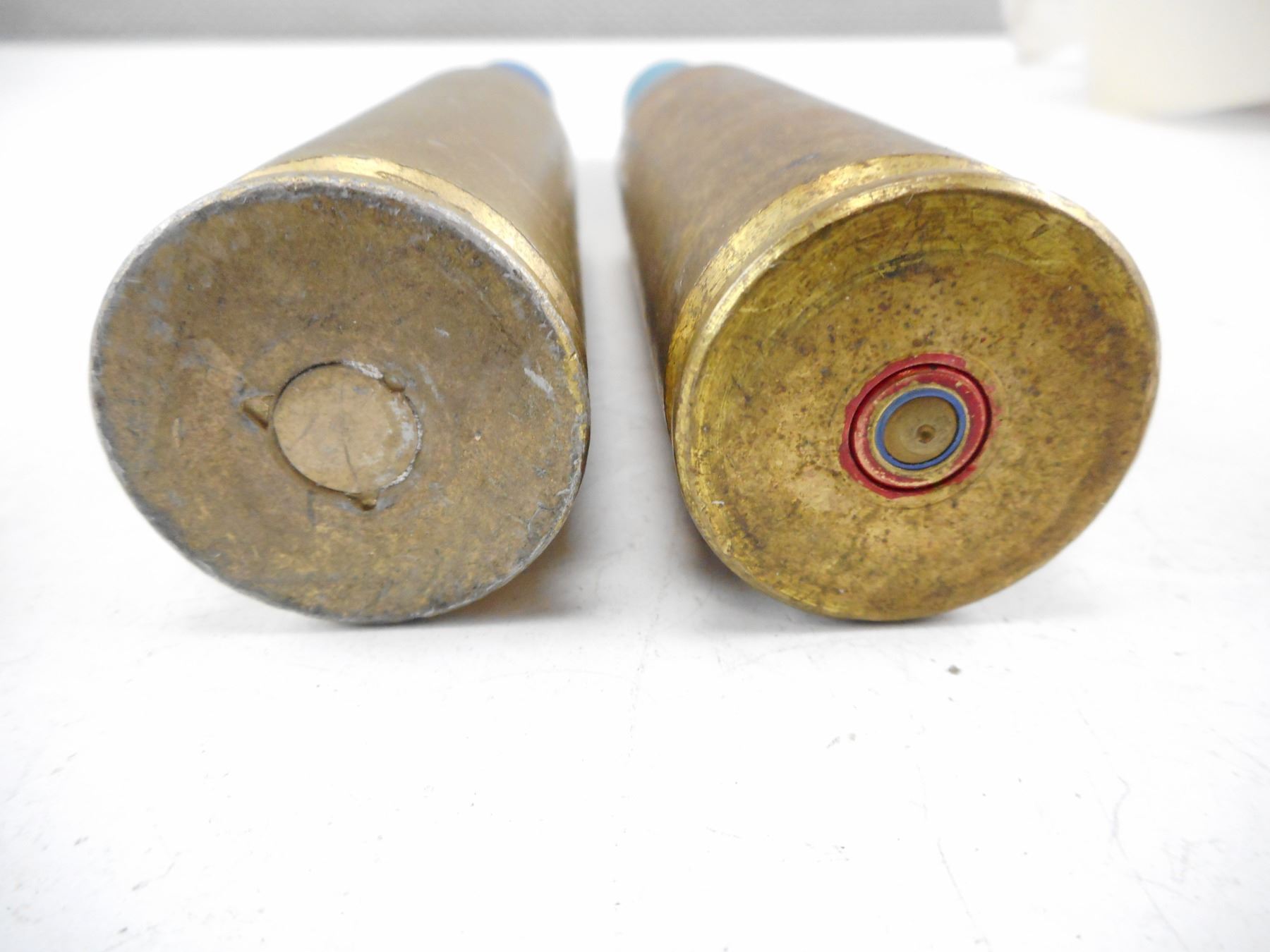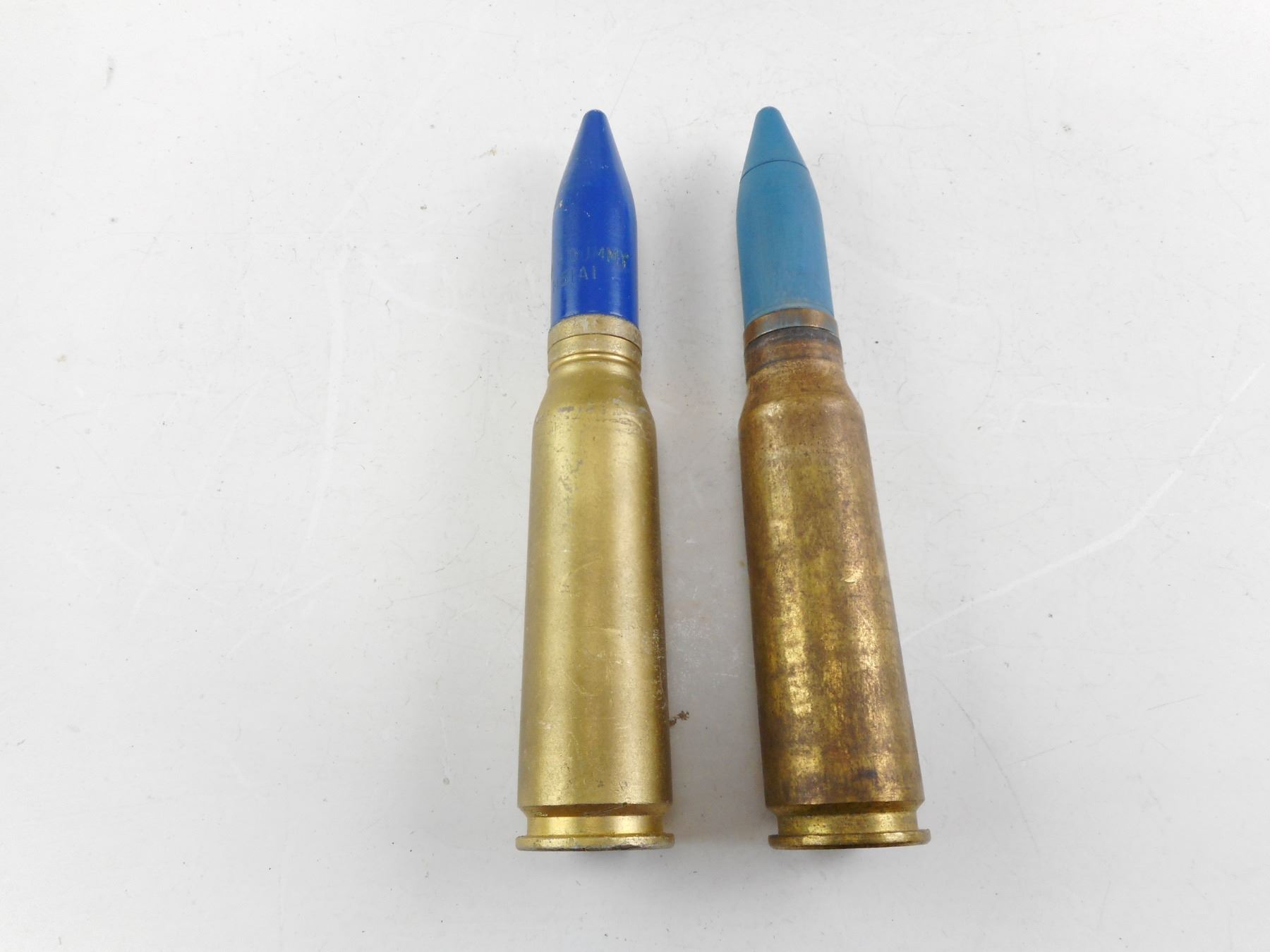 INERT 20 MM CANNON RNDS, STEEL CASES, BLUE PAINTED PROJECTILE , LOT OF 2