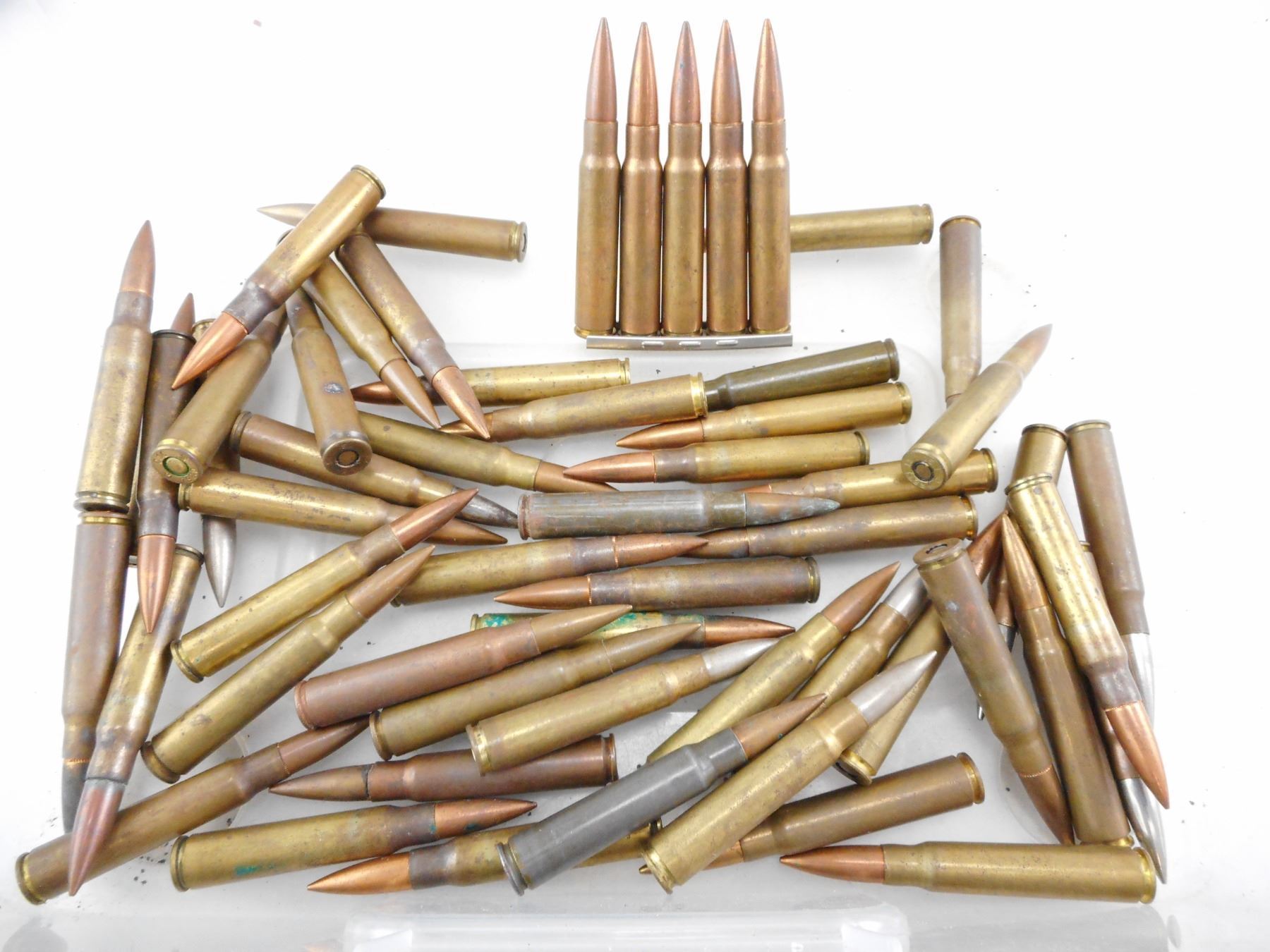 ASSORTED 8MM MAUSER AMMO LOT, WWII GERMAN, US, CANADIAN, VARIOUS YEARS , 56 RNDS