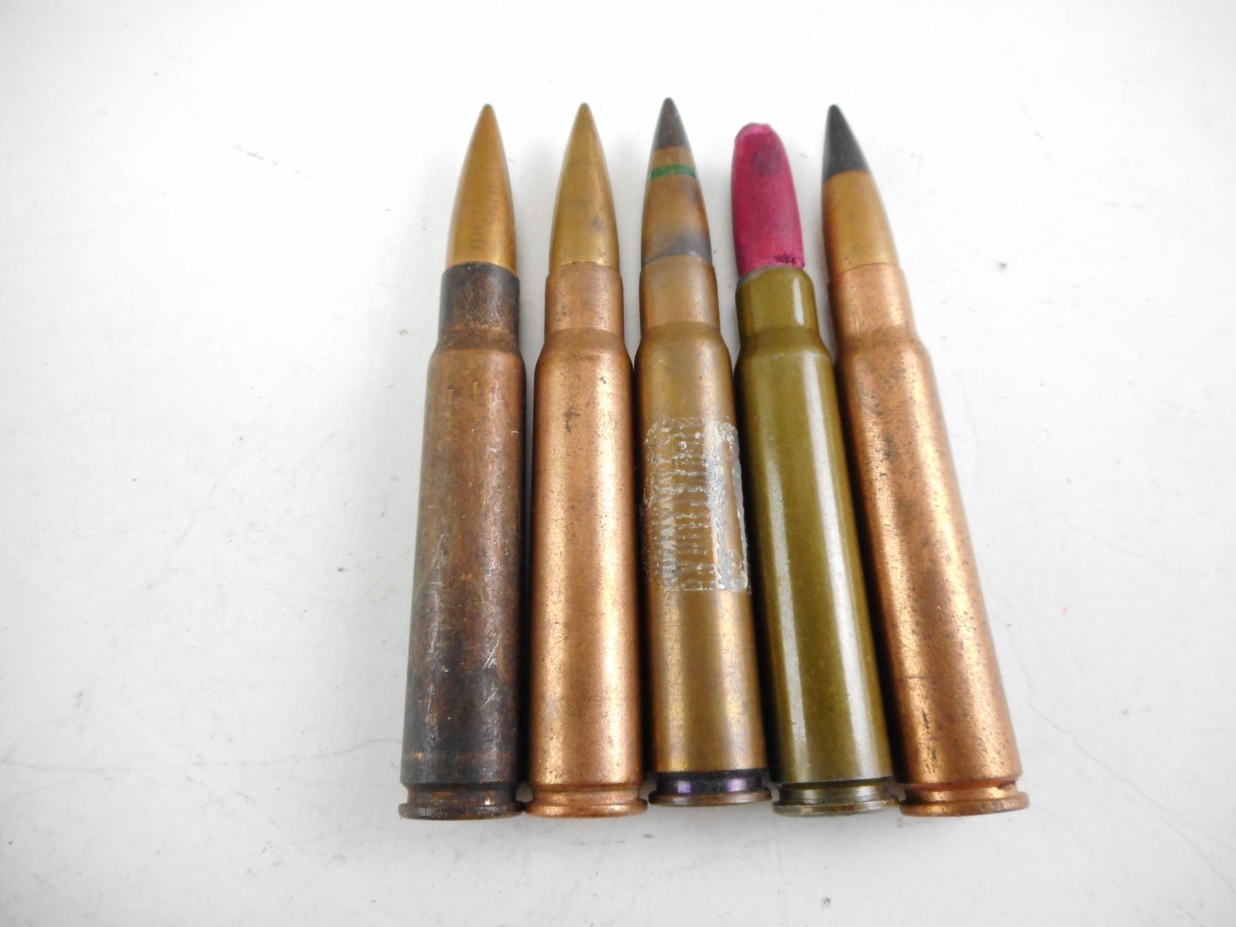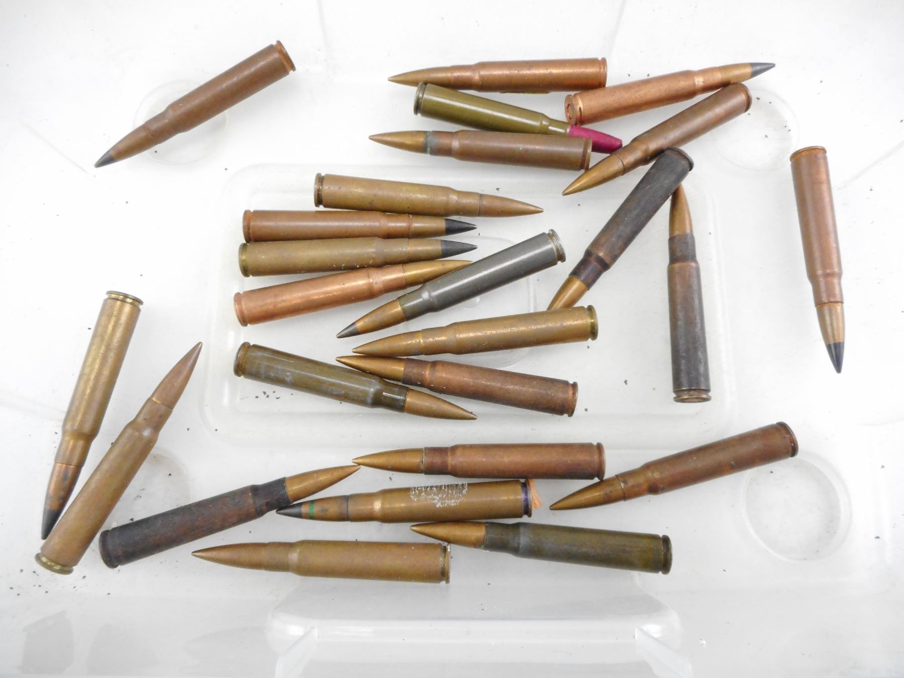 WWII GERMAN 8MM MAUSER AMMO, INCLUDING TRACERS, AP, COLOURED BULLET TIPS , 25 RNDS
