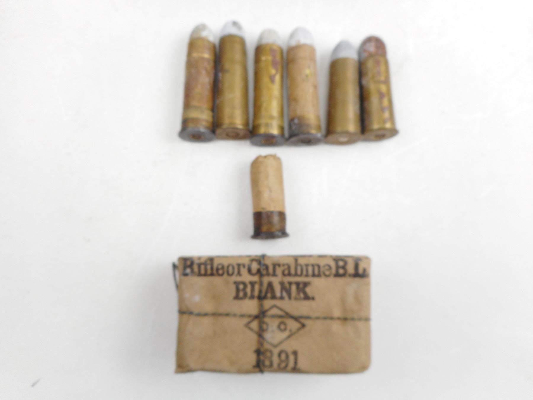 .577 SNIDER AMMO AND BLANKS IN UNWRAPPED PACKAGE, DATED 1891 , 17 RNDS