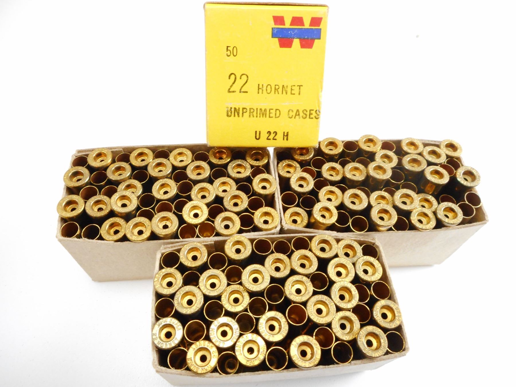 NEW .22 HORNET, WINCHESTER WESTERN BRASS CASES IN BOXES , 150 NEW BRASS CASES