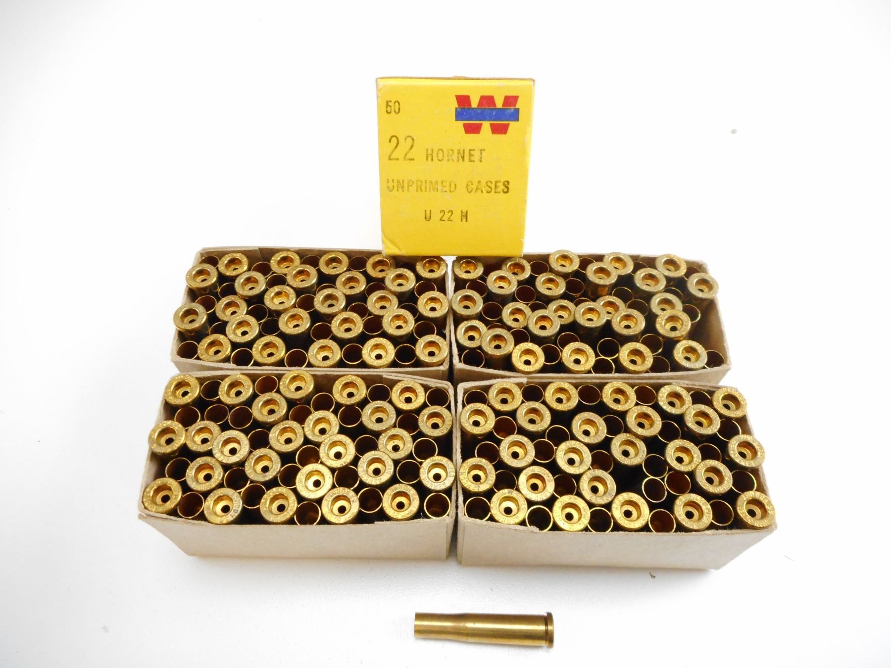 NEW .22 HORNET, WINCHESTER WESTERN BRASS CASES IN BOXES , 200 NEW BRASS CASES